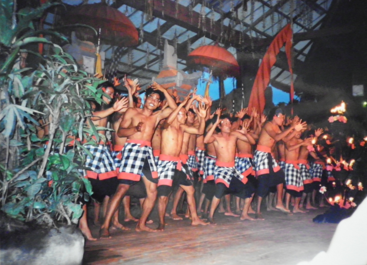 ケチャックダンスとは、バリ島古来の太陽崇拝と海から魔物が陸に上がってこないように祈る儀式を、ウォルター・シュピースなどの外国人芸術家の助言により発展させ、創作されたバリ舞踊で、さらにラーマヤナの物語も取り入れらた舞踊劇となっています。