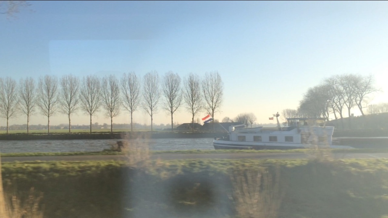 電車内は静かでとても快適でした。アムステルダムに近づくにつれて車窓には平坦な景色になり、川や緑が広がってとても癒される風景でした。