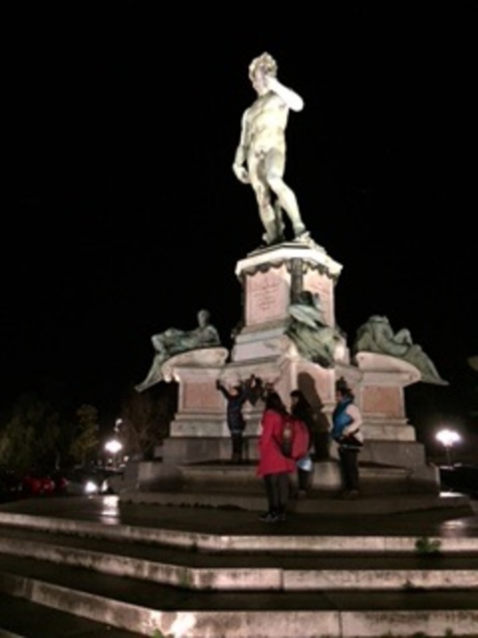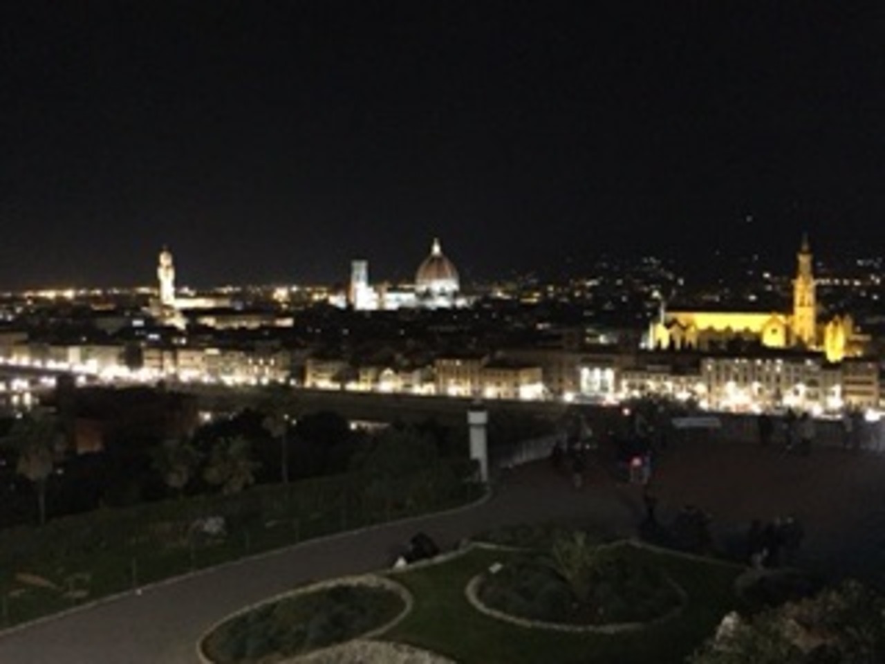 フィレンツェの中心部からかなり外れ、丘の上までバスでいきます。12月の末なので、6時頃でも完全に日が暮れて夜景となってしまいました。それでも、主要な建物がライトアップされていて、大変に綺麗な夜景を見ることができました。