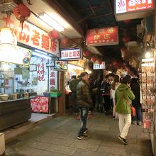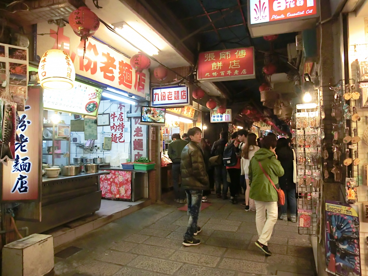 淡水から海岸経由のバスで行きました。途中山の上に上ってUターンして停車しました。皆さんバスから降りるので何かと思ったら「テレサ テン」のお墓でした。基隆でバスを乗り換えます。九分の基山街のすぐそばに泊まったので朝晩歩きました。お正月過ぎの平日ですがそれでもほどほどの人込みでした。両側のお店はおもしろく、芋ぜんざい・臭豆腐など食べ歩きました。基山街の端からは海も見渡せます。私の中では最も台湾らしいイメージの場所です。