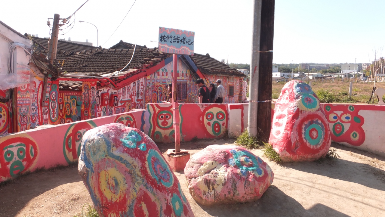 自分の家の前から隣の家の壁、路地へと、黄じいさんの絵の世界が広がり、評判をきいた撮影趣味の人々がやってきて、ブログやフェースブックで発表。台中市長は、2010年9月に自らここを訪問。黄じいさんの描いた絵で色彩豊かになった眷村に感動。