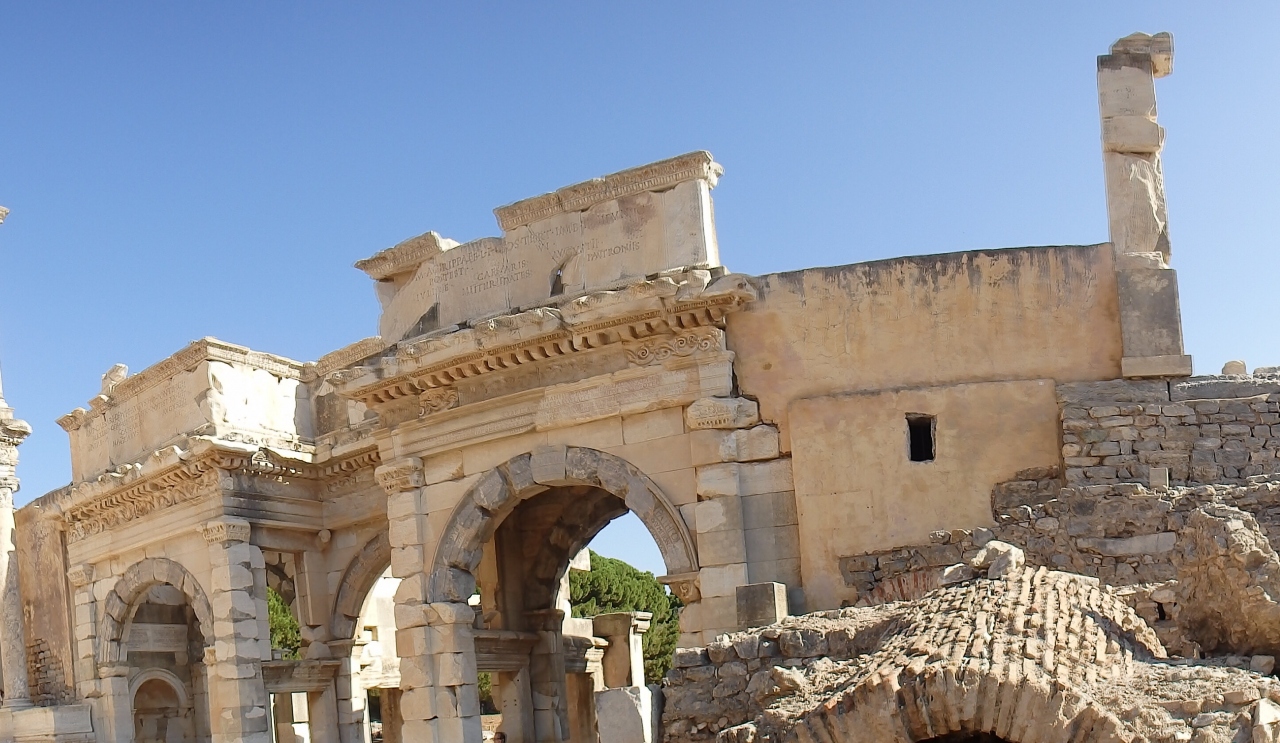 各種資料によると、紀元前3世紀に、奴隷から解放されたマゼウスとミトリダテスが寄進した門だとのこと。門の上部には、ギリシャ語ではなく、ラテン語で書かれたと思われる碑文がありますが、ホンモノかレプリカかなのかは未確認です。