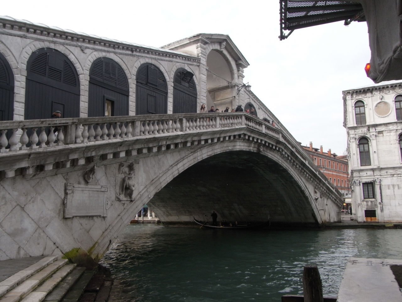 橋自体を見るには遠目に見てもきれいですが、ヴァポレットで下からくぐるのもおすすめです。