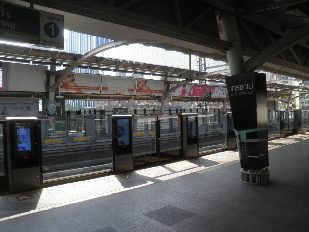 バンコクの高架鉄道の駅の中には、ちょっとした売店があって、食べ物や雑誌などを売っているところがあります。 チットロム駅はショッピング街とスカイウォークでつながっていて利用客が多い駅です。 ホテルに帰るときここで、ジュース屋台でキャロットとパッションフルーツのジュースを買いました。 酸っぱくて氷の上で冷やしてありました。 40バーツでちょっと高めですが、駅のプラットフォームの一番端にはベンチがありました。 腰かけて行き来する列車を観ながら休憩しました。