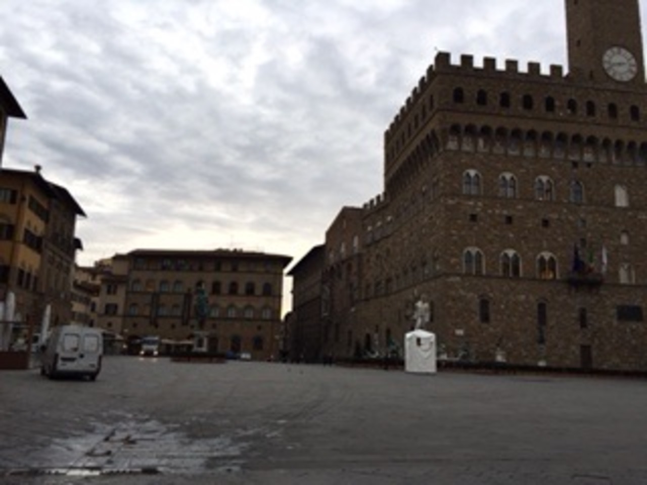 ベッキオ宮殿の目の前にある広場です。朝早くに訪ねたため、人影はまばらでしたが、美術館鑑賞を終わって出て来る頃には、観光客でいっぱいでした。ミケランジェロのダビデ像(レプリカ)や噴水、彫刻などがたくさん鑑賞できます。