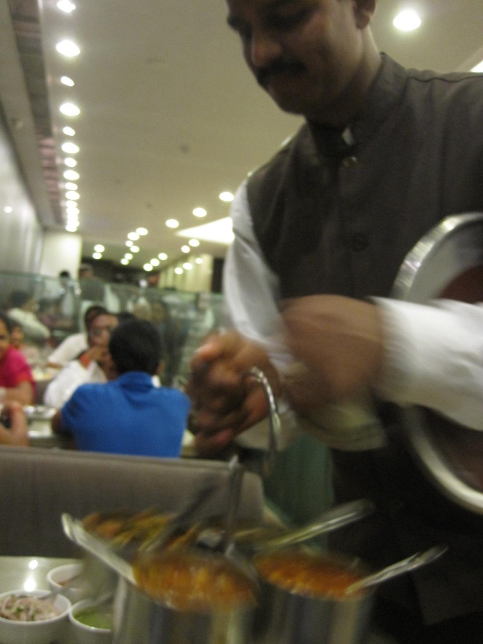 ちょっと食の進んだカレー皿には補充が容赦なくつぎ足され、ナン他の粉モノやごはんも品を替え次々と出てきます。