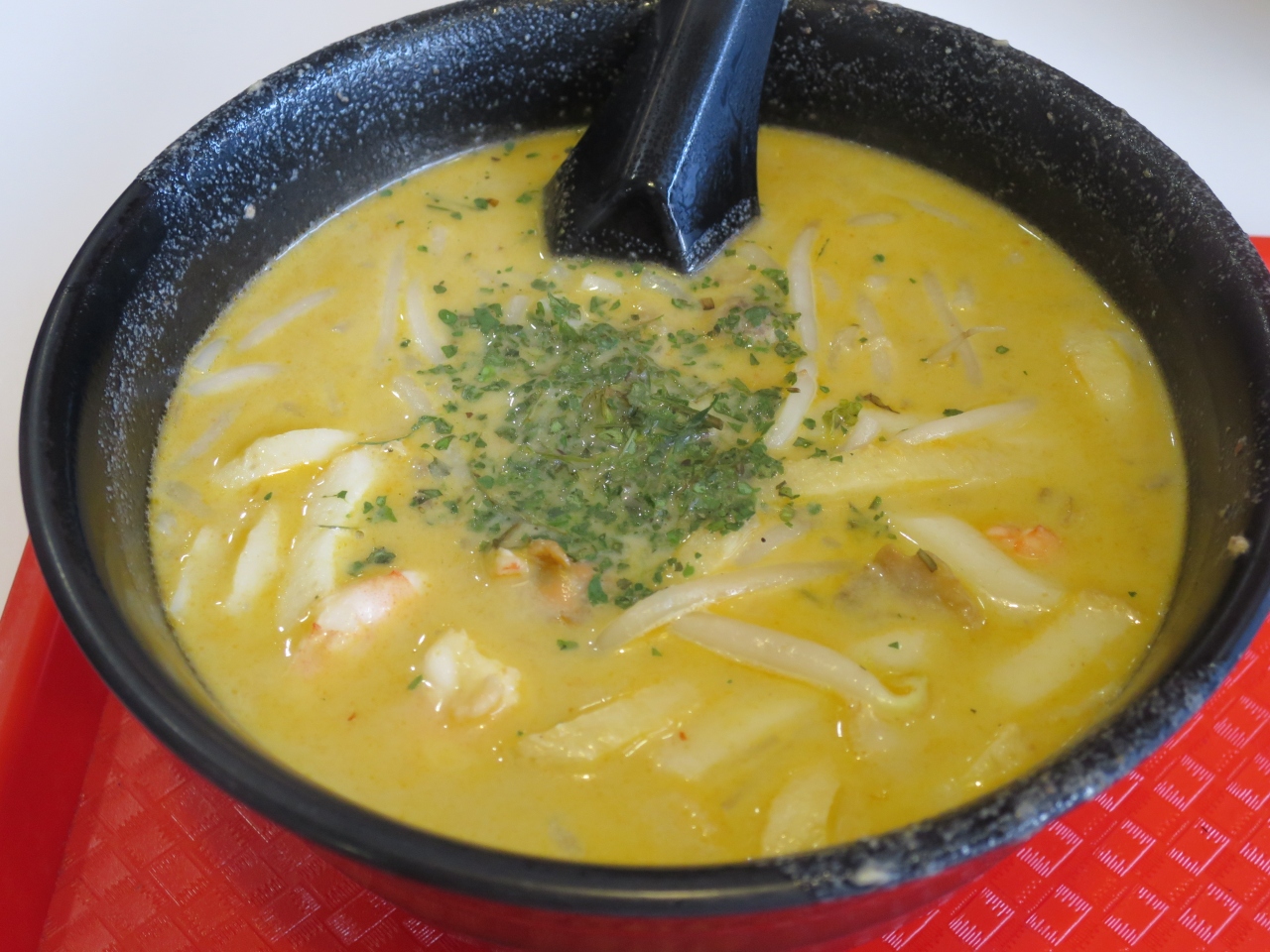 MRT Paya Lebar駅から無謀にも歩いて行きました。途中人に道を尋ねて歩くこと30分かかりました。日曜日の夕方6時で店内は9割方の混み具合でした。ラクサとライムジュースを注文、ラクサはココナッツミルクが入っておりマイルドな味わいで非常に美味しいです。麺は短いのでレンゲで食べられます。アサリかシジミの剥身のようなものが何粒か入っていました。日本人だと貝入れるか聞かれるとの口コミがありましたが私は聞かれず、勝手に入れられていました。貝は標準装備に変わったのでしょうか?帰りは外にたまたまいたタクシーに乗ってMRTのEunos駅で降りました、約6Sドル。バス利用かタクシー利用が良いようです。