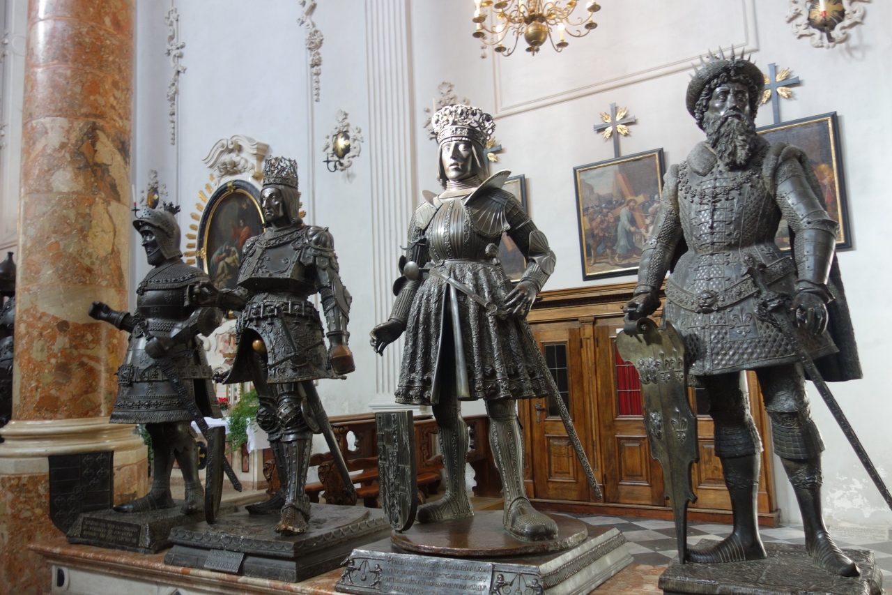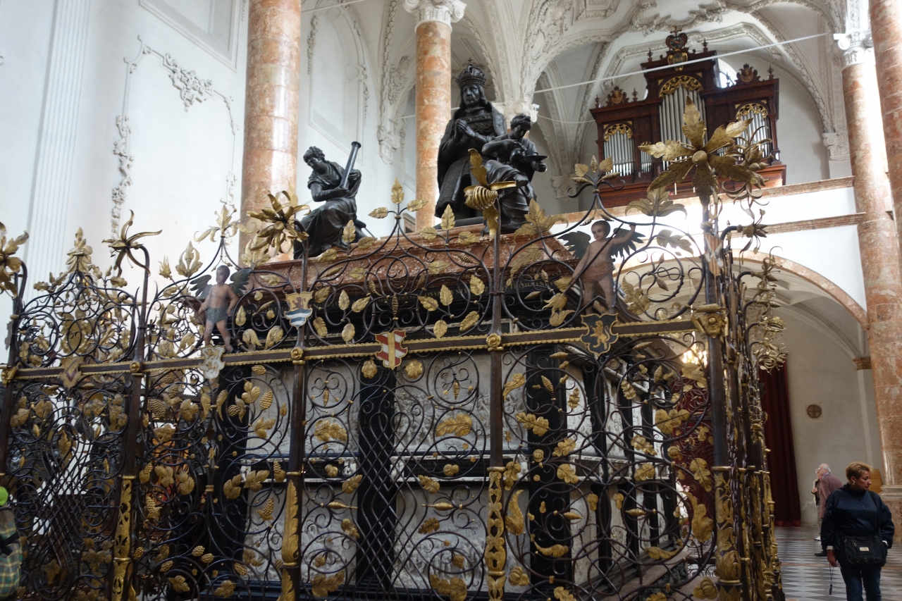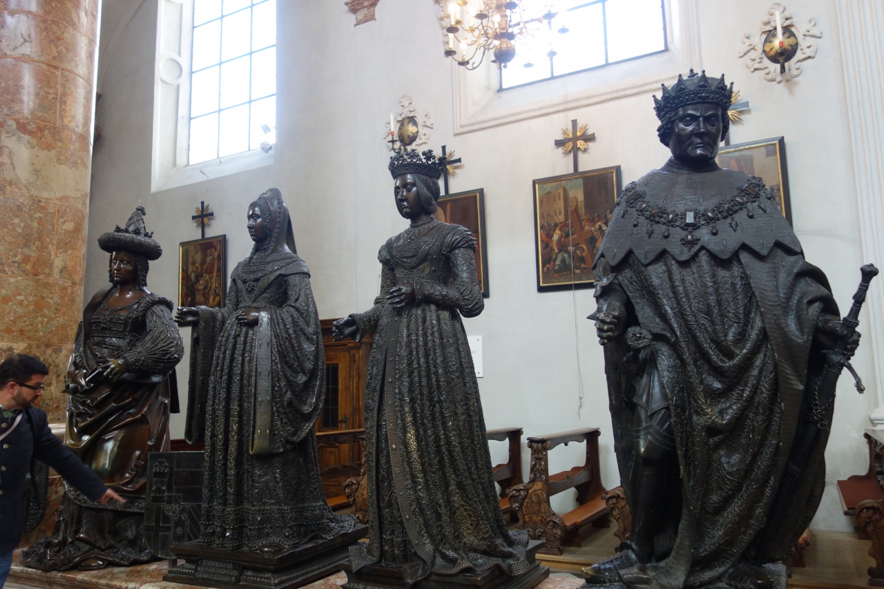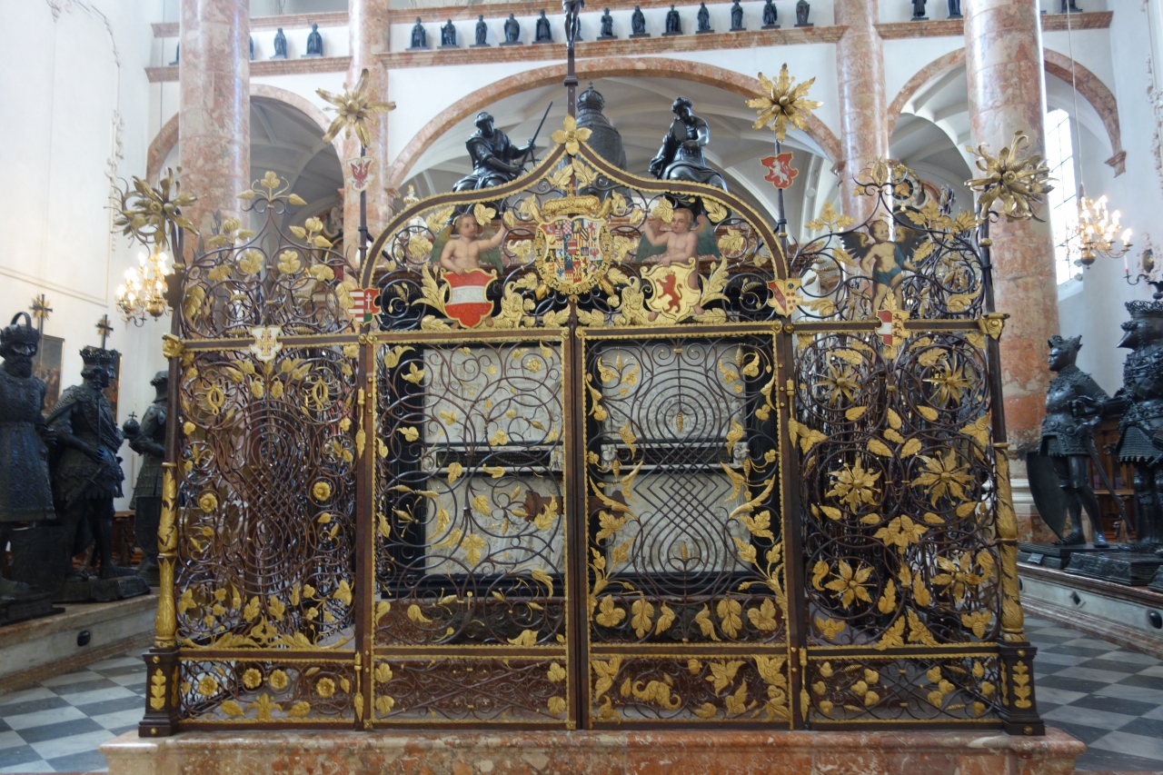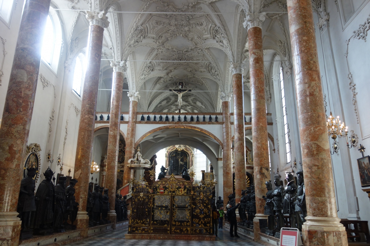 チロル地方を治めたマクシミリアン1世が自分のお墓として建て、霊廟の両側には等身大以上の28体のブロンズ像が並び、ドイツルネサンスの最高の傑作と言われています。