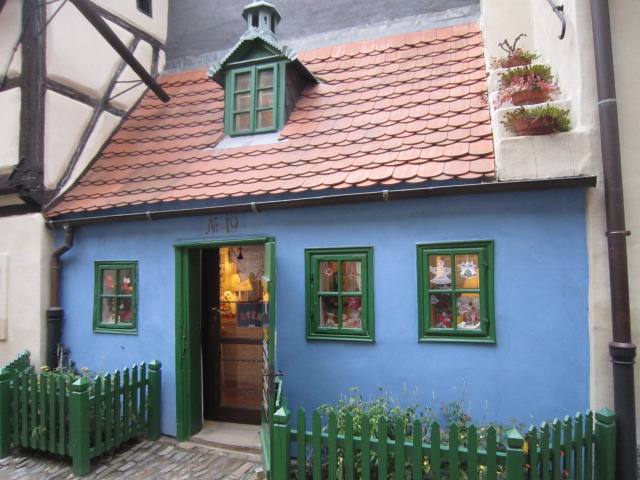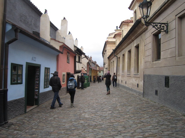 プラハ城内、もとは16世紀にお城の従者のいわば社宅だったそうですが、どれも小さくて、本当に住んでいたのでしょうか?今はカラフルでかわいらしいお土産屋さんが並び、見るだけでも楽しめます。中にはフランツ・カフカが一時期執筆のために住んでいたという家もあります。