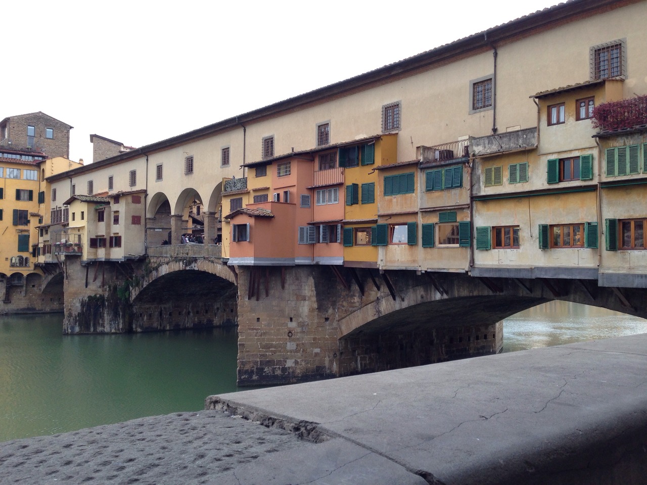 雄大なアルノ川と、橋の上の建物がおしゃれで、いい写真スポットです。