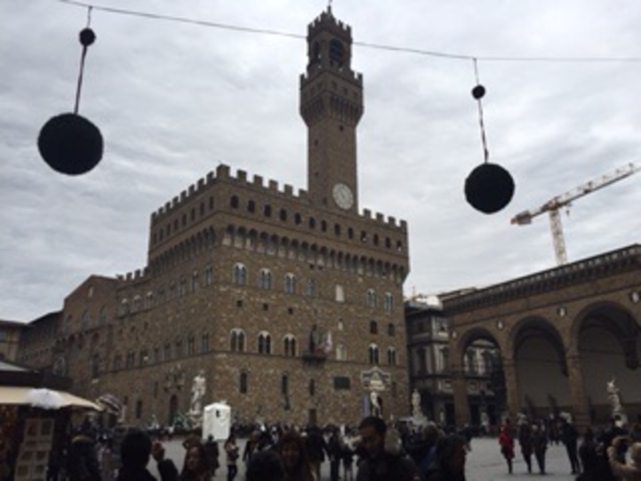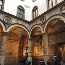 シニョリーア広場に面しています。もともとは、フィレンツェ共和国の政庁だったり、住居として使われたりしましたが、今は、フィレンツェ市役所として、使われています。エントランスを入ると、立派なスペースがあり、流石に元宮殿だと感じます。