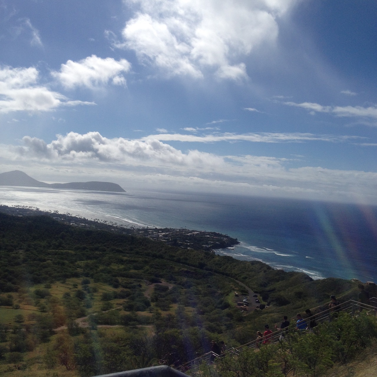 朝からワキキキからウォーキングでダイヤモンドヘッドに登りました。ダイヤモンドヘッドまでの海岸沿いの景色は海も、お花も最高に綺麗で景色で楽しめました。登り始めて、思ったより長い道のりでした。山頂から見る景色で疲れも吹き飛び!パワーチャージできました(^^)
