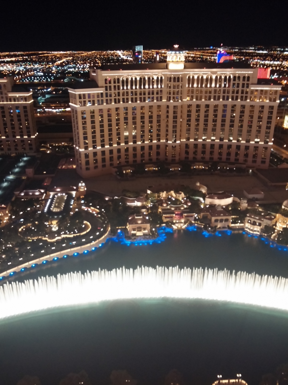 ホテルパリスのエッフェル塔からの眺めは最高です。特に夜景の輝く時間がお勧め!砂漠の中、整然と並ぶ灯りが360度楽しめます。眼下にはベラッジョの噴水も見えます。パリス、バリーズ宿泊の場合、一人の料金で二人利用できます。ぜひクーポン券をゲットして下さい。パリスの地下インフォメーションに尋ねると良いかも?その他のお得情報も要チェックです。