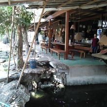 お店の中は“日本風”の庭があり立派な鯉も泳いでいてなんとも涼しげな雰囲気でした。日本語の本も何冊か置いてありました。また入口のブーゲンビリアがすばらしい美しさです。これだけでも見に行く価値があると思います。