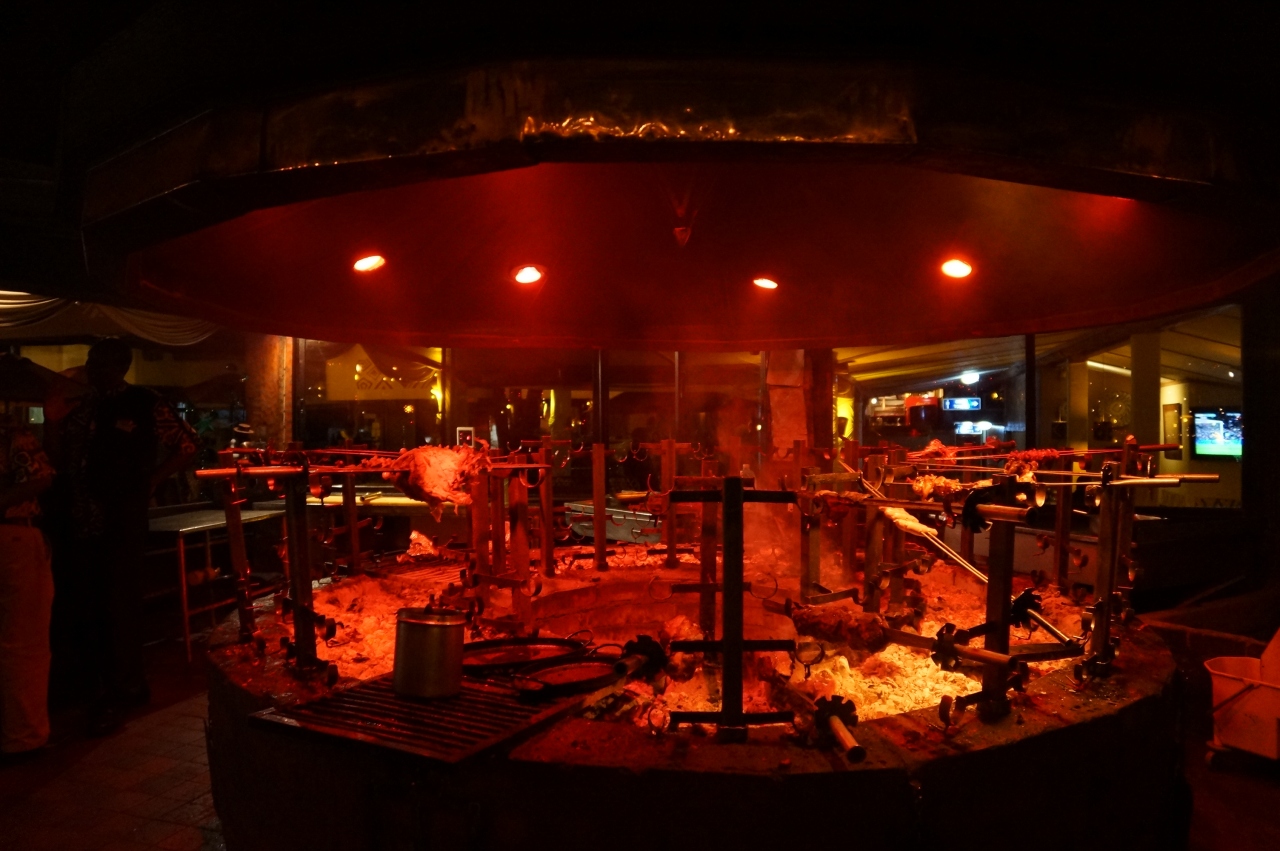 ワニ肉、ダチョウ肉、ウサギ肉、ヤギ肉、豚肉、牛肉、チキンがありました。食べ放題なのでおかわり自由で好きなだけ食べることができます。サラダやスープもついてきました。ガイドブックにはキリン肉もあると書いてあったのですが、行ったときはなかったです。