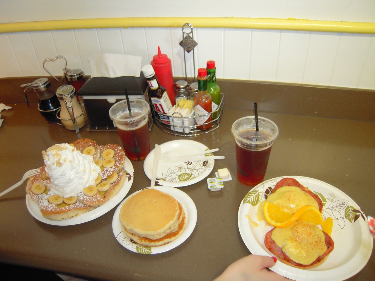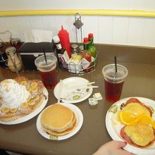 場所はカラカウア通りに面しているので運良く窓際の席に案内されればハワイらしい感じを味わえると思います。今回は奥のカウンターだったので残念です。見た目は重たそうですが、意外と軽く食べれます。