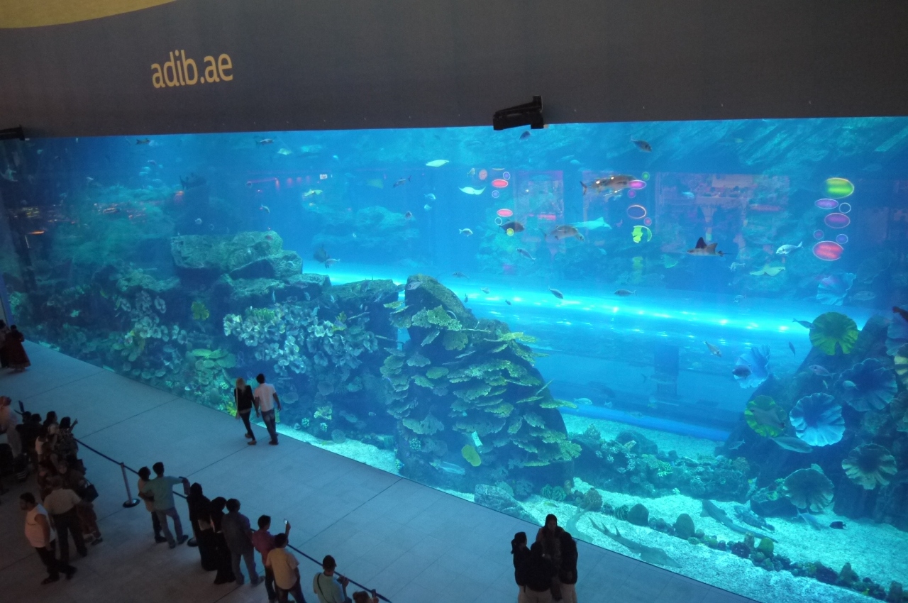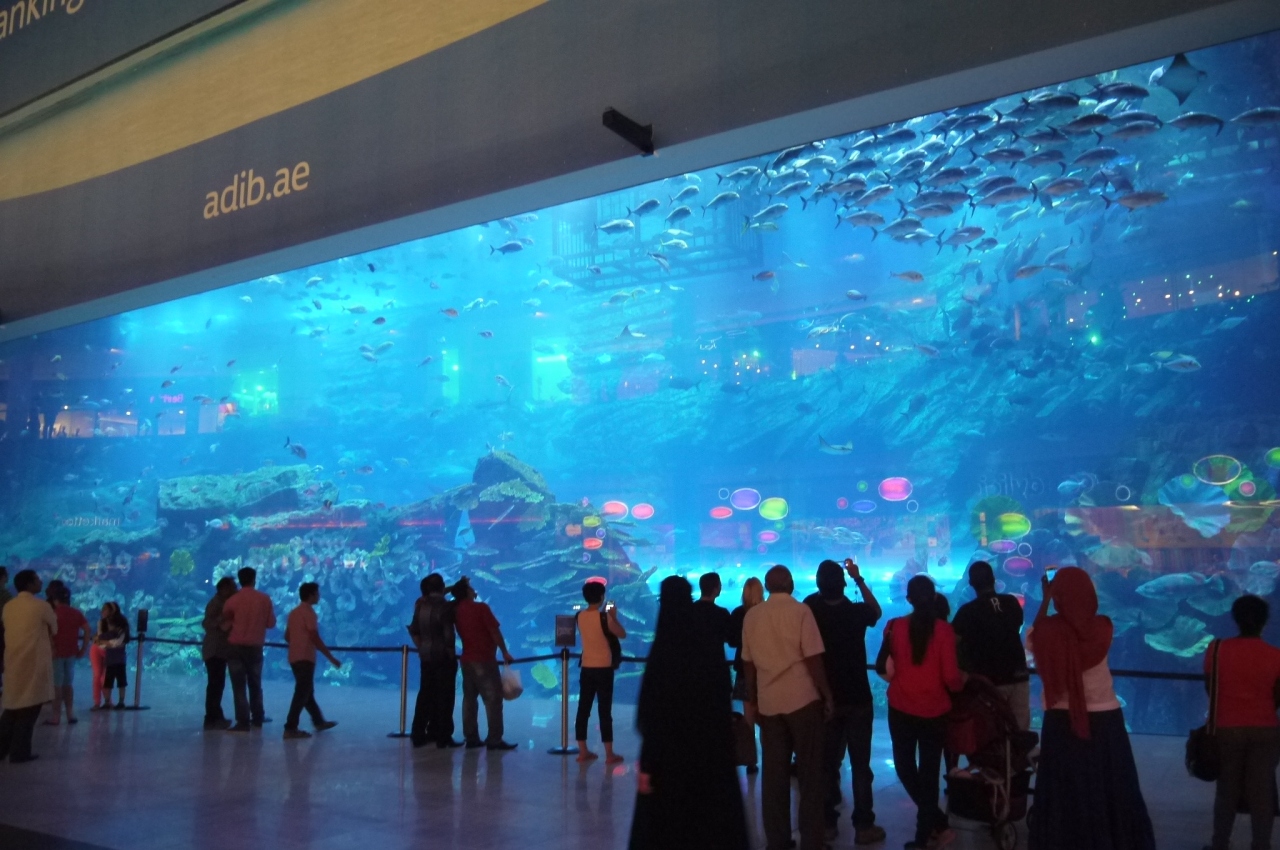 ドバイに数ある世界一シリーズの1つでもある水族館です。同じく世界一のドバイモールの中にあります。無料で見られる巨大な水槽にもお魚もたくさんいて見ていて涼しげでした。正面からでも上の階からも見学できます。灼熱のドバイだからか余計涼しく感じられました。