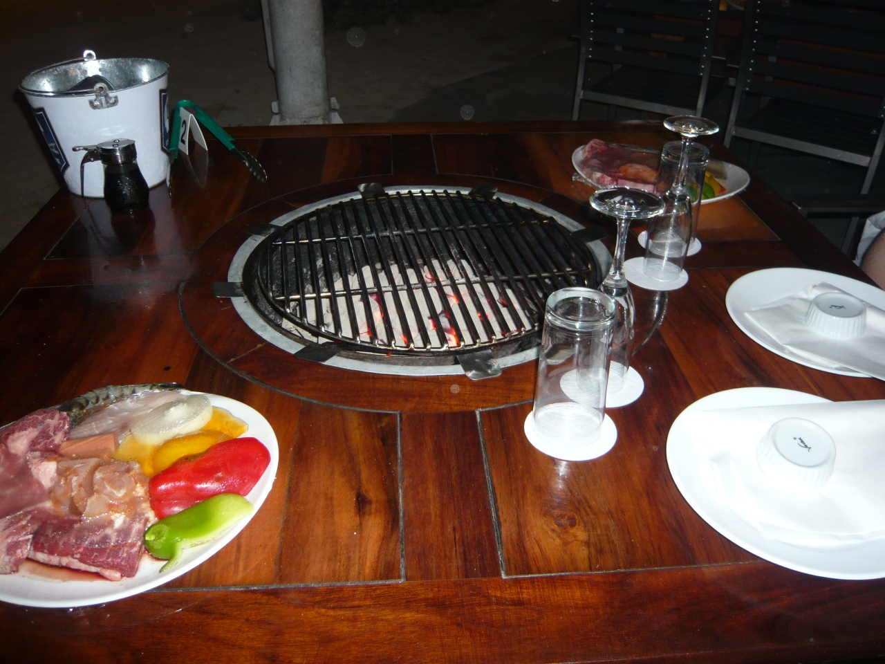 料理は、あらかじめテーブルに置かれている肉や野菜&サラダバー(&ドリンクバー)で、お肉はかなりボリュームがあります。BBQの割にはやわらかく、おいしいです。