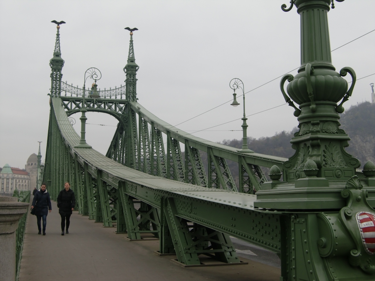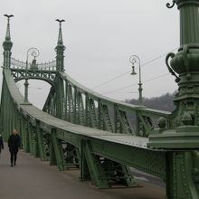 ブダとペストを結ぶ9本の橋のひとつ。中央市場からゲッレールト温泉やゲッレールトの丘に行くときにこの橋を渡ります。建国1000年を記念して造られたそうで緑色の橋脚の上にはハンガリーの伝説の鳥が飾られています。橋にはトラムも通っていて夜景もきれいです。