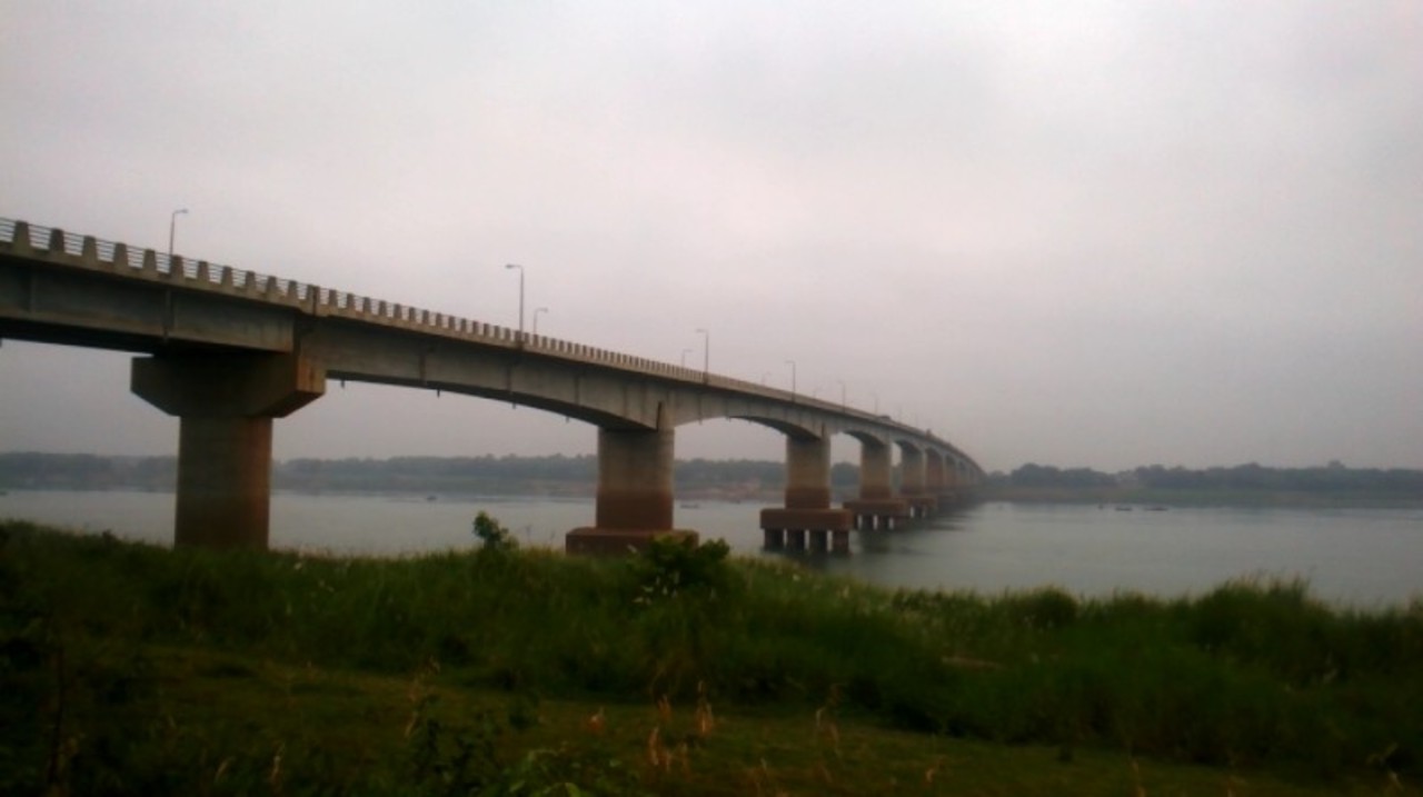 コンポンチャーム州のメコン川沿いの洪水予防対策を工事中ですが、きすな橋(日本国の支援)は雨季の末頃は洪水が時々があります。歩くと気をつけてください。乾季は漁のボードと朝焼けを楽しんでいる。北の風が涼しいです。景色が素晴らしかったです。