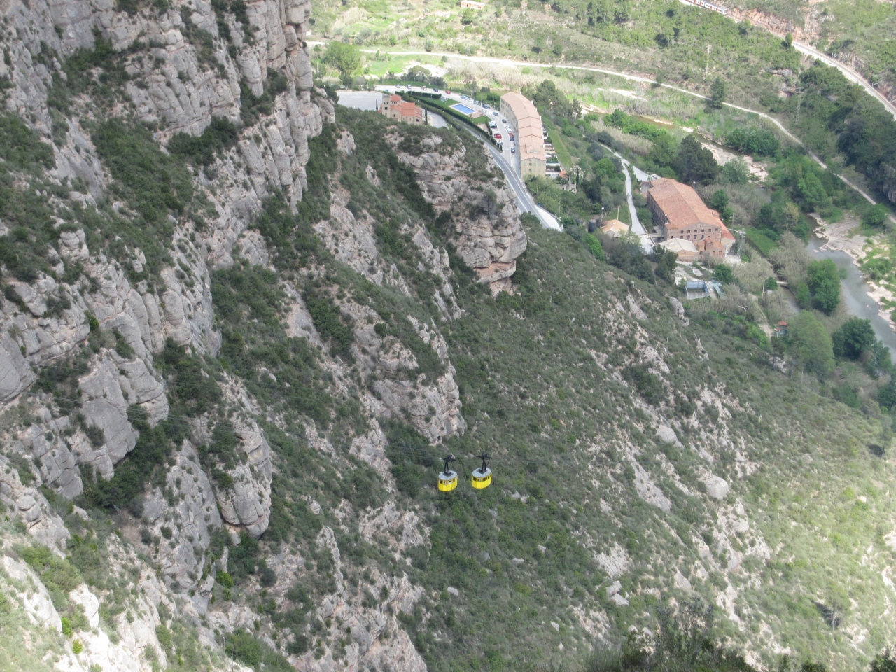 モンセラート修道院の近くからは、サンジュアンに登るフニクラと、サンタコヴァに降りるフニクラがあります。後者に乗り、ケーブルカーのサンタコヴァ駅で降りたところから遊歩道があります。下から上がってくるロープウェイや、修道院などが見えて、とても良い景色をあじわうことができます。
