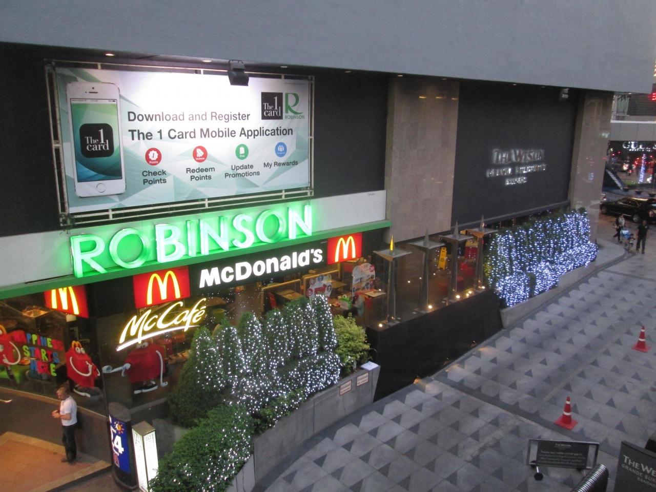 毎年恒例のロビンソンのクリスマスイルミネーションが開始されました。同じ建物にあるウェスティンホテルから電飾が飾られておりきれいでした。普段、店内は空いていますがクリスマスセールが開始され訪問客が多かったです。