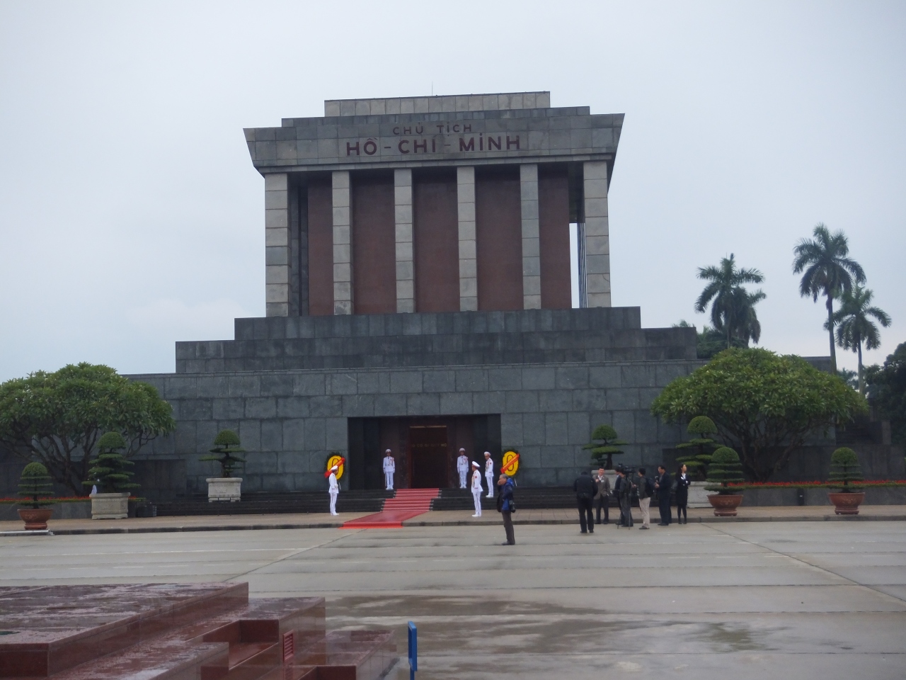 衛兵が取り囲むホーチミンの遺体の周囲を立ち止まらずに一周しますが、独特の冷気を感じました。