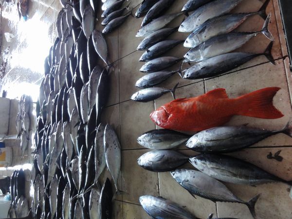 売られているのを見ました。また、魚の加工(うろこを取ったり、皮をはいだりする)人々の手つきがテキパキしていて見ていて気持ちが良かったです。