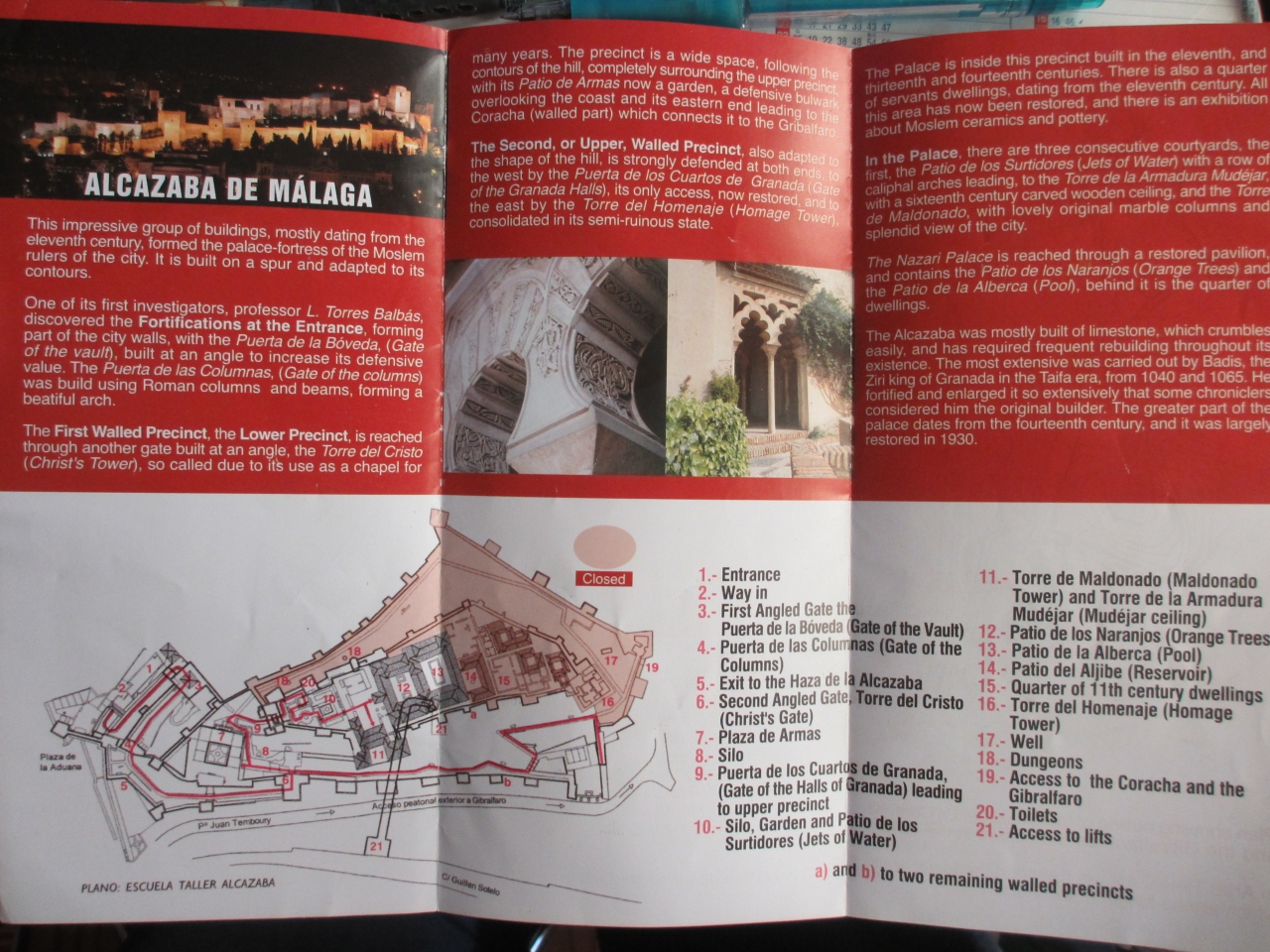 イスラム時代の要塞です。かなりの段数、階段を登って行くことになりますが,イスラム庭園や見下ろす街や海の景色は綺麗です。私は日曜日に行ったら無料で入ることができました。無料の時間帯も入場口でパンフレット(写真参照)をもらえます。日曜日の14:00以降は無料のようです。出入口の近くには観光案内所があり、駅に戻る一番近いバス停を尋ねたら丁寧に教えていただくことができ助かりました