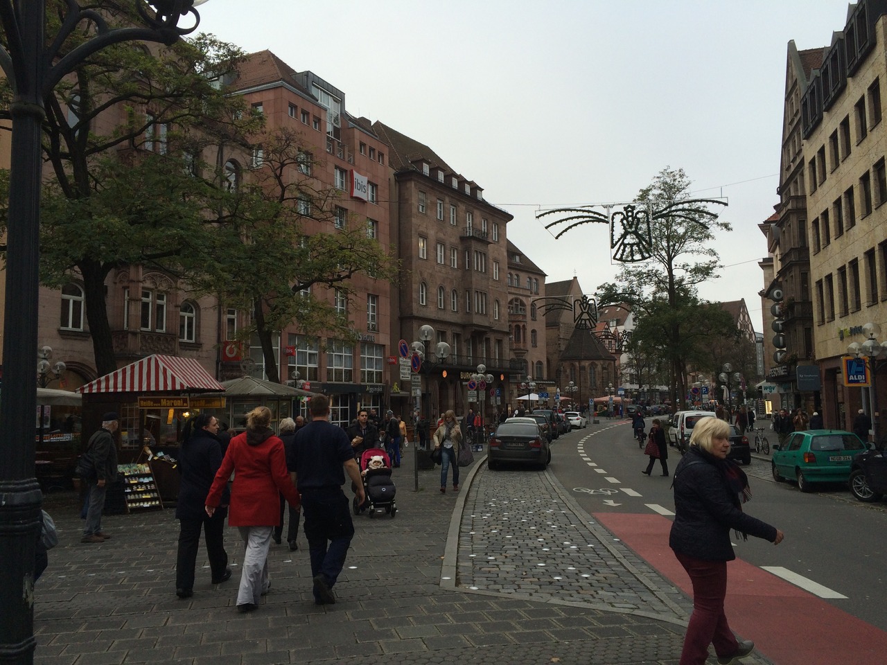 この通りは、ニュルンベルク中央駅から旧市街地、中央広場に向かう時に通る道です。