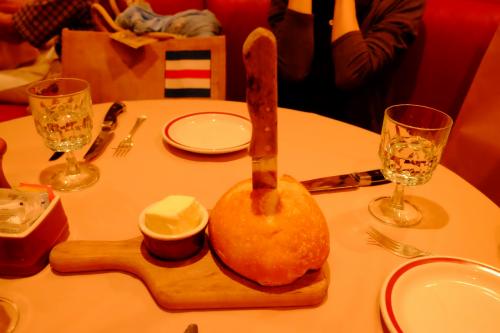予約して行きましたが、お店はかなり混雑しており30分程度待たされました。まずサワーブレッドにナイフがぶっ刺さった状態でひと塊のバターとともにサーブされ、続いてテーブルサイドでサラダをMixしてくれます。お肉の厚みは1.5cmぐらいあったと思います。