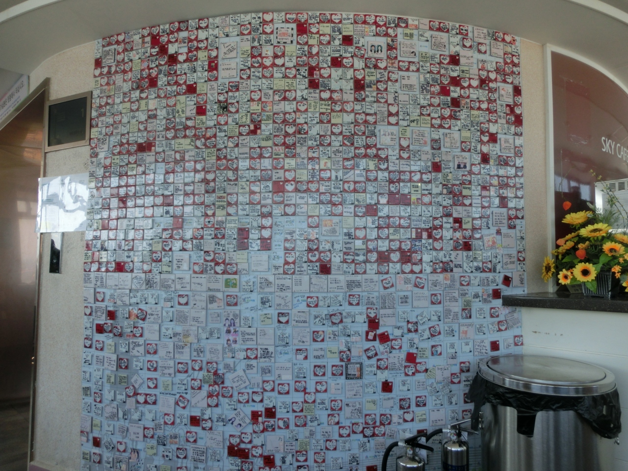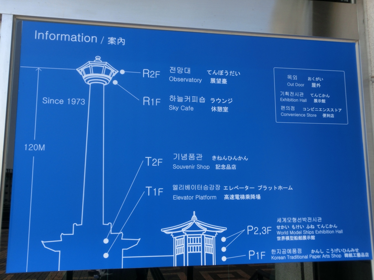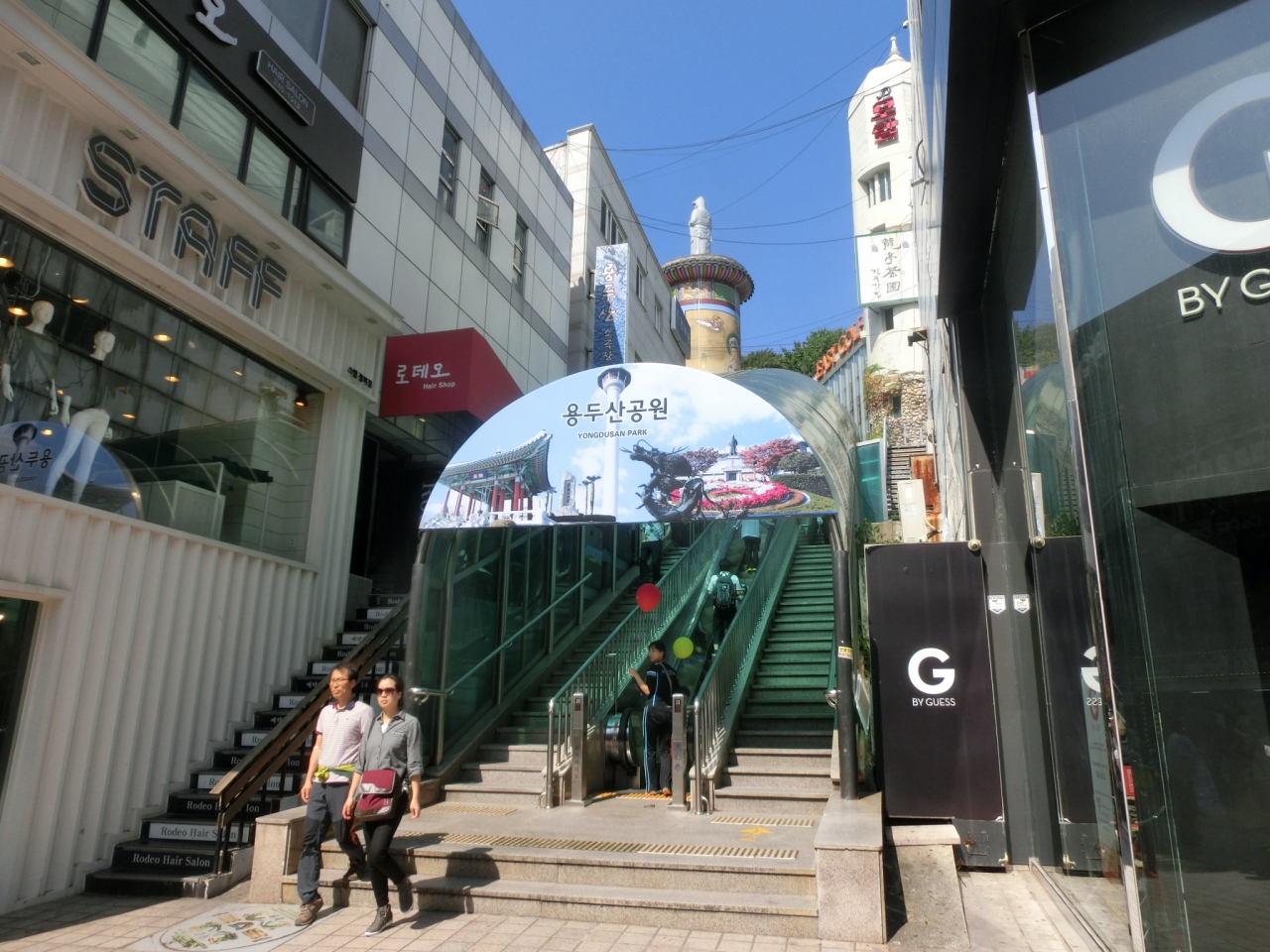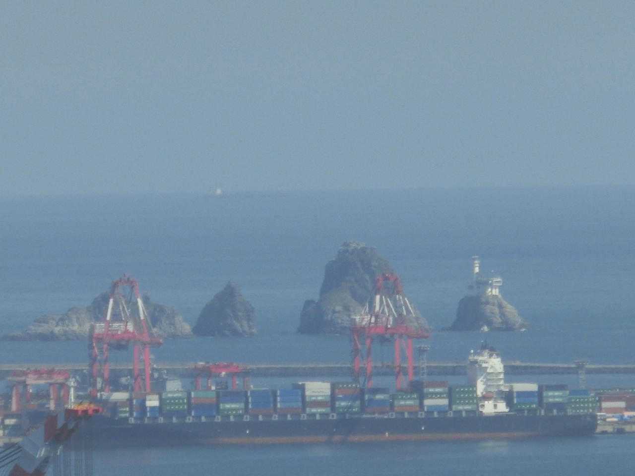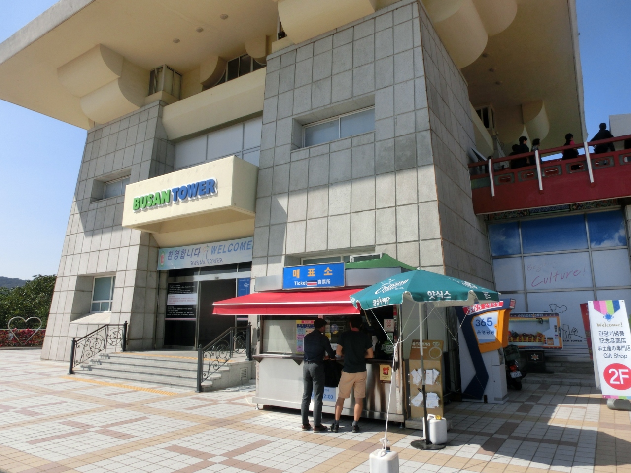釜山タワー、高さは120mで あまり高くないと思われがちですが、ここは龍頭山という丘の上、山そのものが189mあるわけですから 全部で300m超え、東京タワーの展望台よりも高いという事になります。登れば釜山の街並みが一望、港、遠くには小島も。これだけで十分楽しめます。