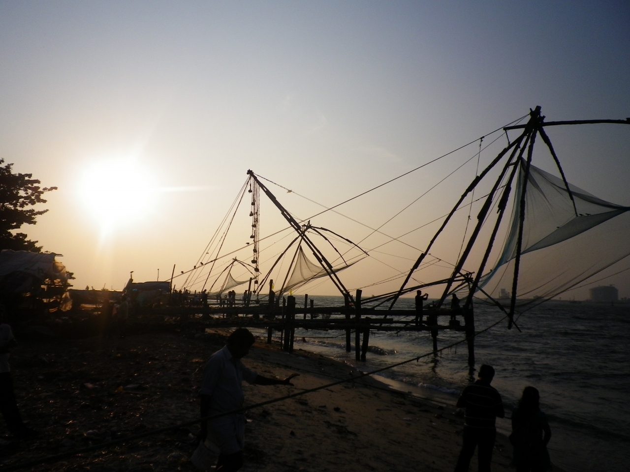 毎日夕方になると漁が始まります。夕焼けと、ビーチと、漁。幻想的です。猟師さんがネットの先端のほうに入れてくれたりします。採れた魚はそこらへんの屋台で売っています。とても原始的で、大掛かりで、でもそんなに魚は取れなくて・・・。