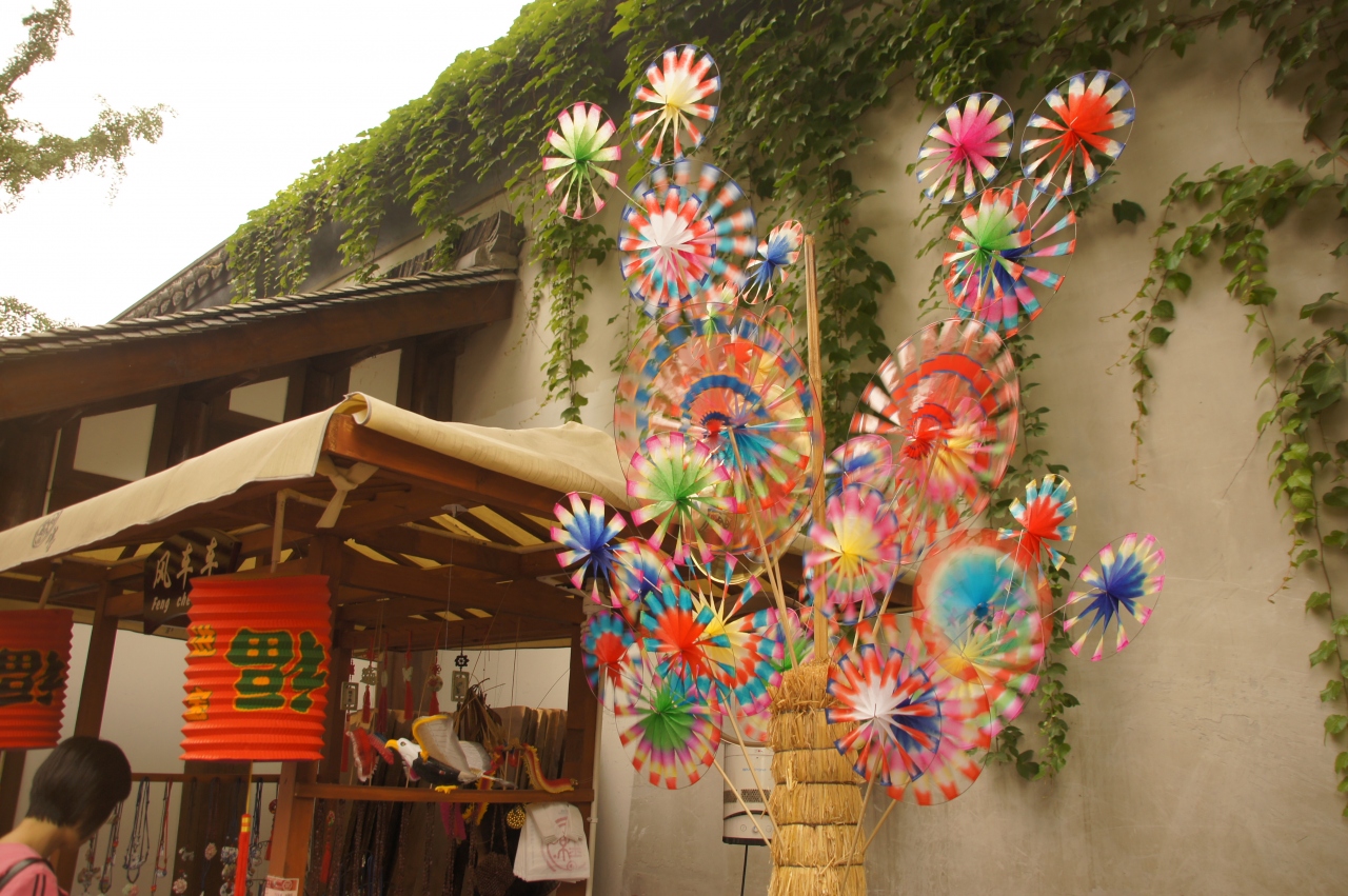 錦里は古い街並み(再現?)とおみやげショッピングがメイン。食事やスターバックスもあり、とってもにぎやかです。ショーウィンドウにならぶ三国志キャラの人形がいっぱいで、デフォルメされているのでかわいい感じでした。