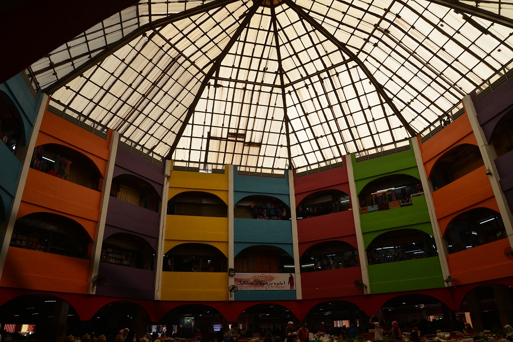 中心が吹き抜けになっているドーム型のマーケットです。1階には生鮮食料の肉、野菜、乾物類、米などや加工食品などあやるゆ商品が売られています。生鮮食料品は臭い、ハエなどつらいものがあります。他にも洋服、雑貨など本当にあらゆる商品があります。カルチャーセンターの近くですので立ち寄ってみたらいかがでしょうか?