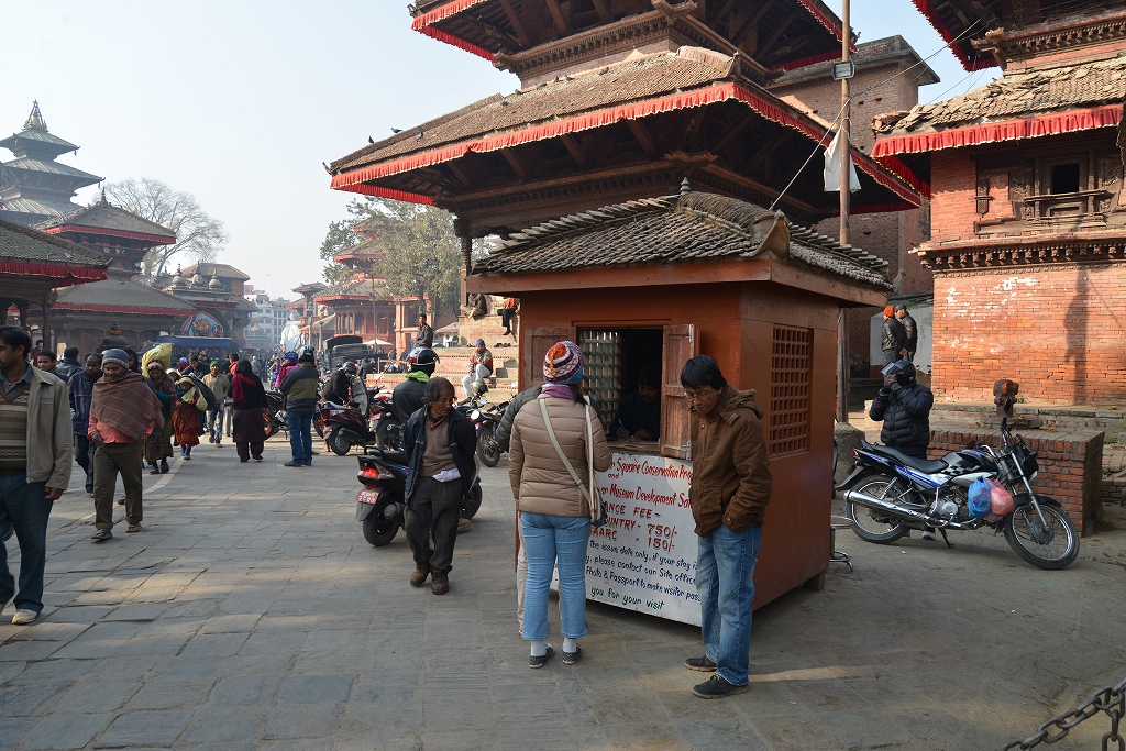 人、鳩、牛が多くいつも賑わっています。入場料を支払う建物があるのでそこで支払いをします。支払っていなくても見学していると巡回している係員にチケット提示を求めて来ますので必ず支払うことになります。チケットは広場にある旧王宮の中庭などにも入ることが出来ます。
