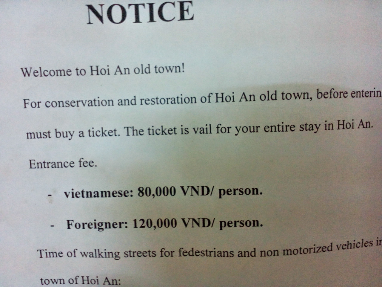 ダナンから路線バスを利用してアクセスした場合、すごく昔々、4年前は7千ドンでしたが今は1万8千ドンもします。車掌のおばちゃんが「2万ドン払ってよ」と私に交渉してきましたが断固拒否しました。