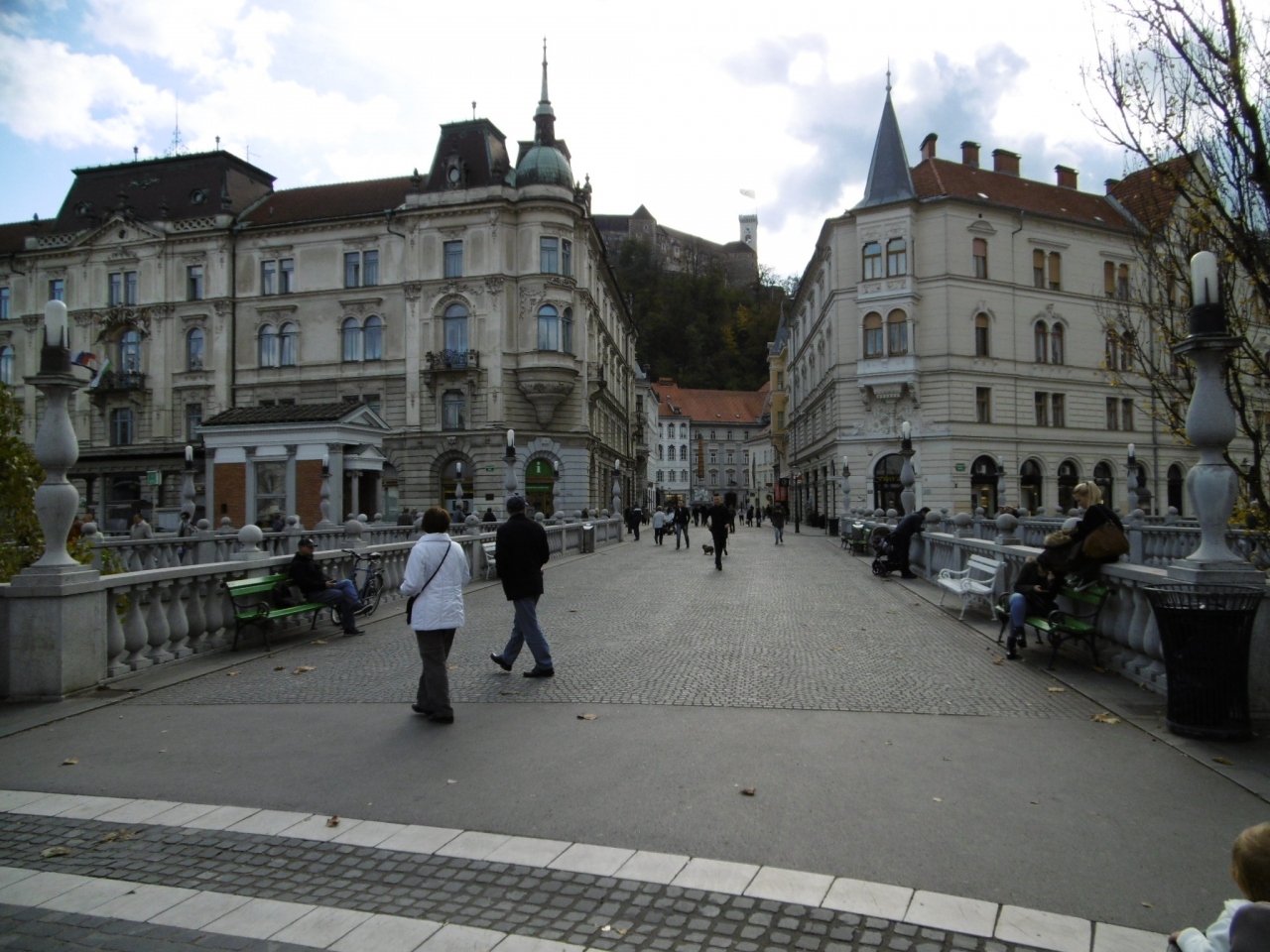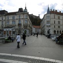 こちらはリュブリャナ中心地を流れているリュブリャニツァ川に架かる橋です。