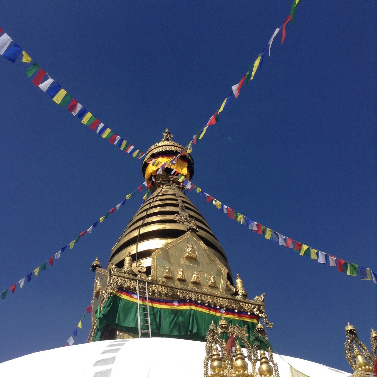 カトマンズのダルバール広場にある展望台からこちらのストゥーパが見えるほど、小高い丘の上にある寺院です。