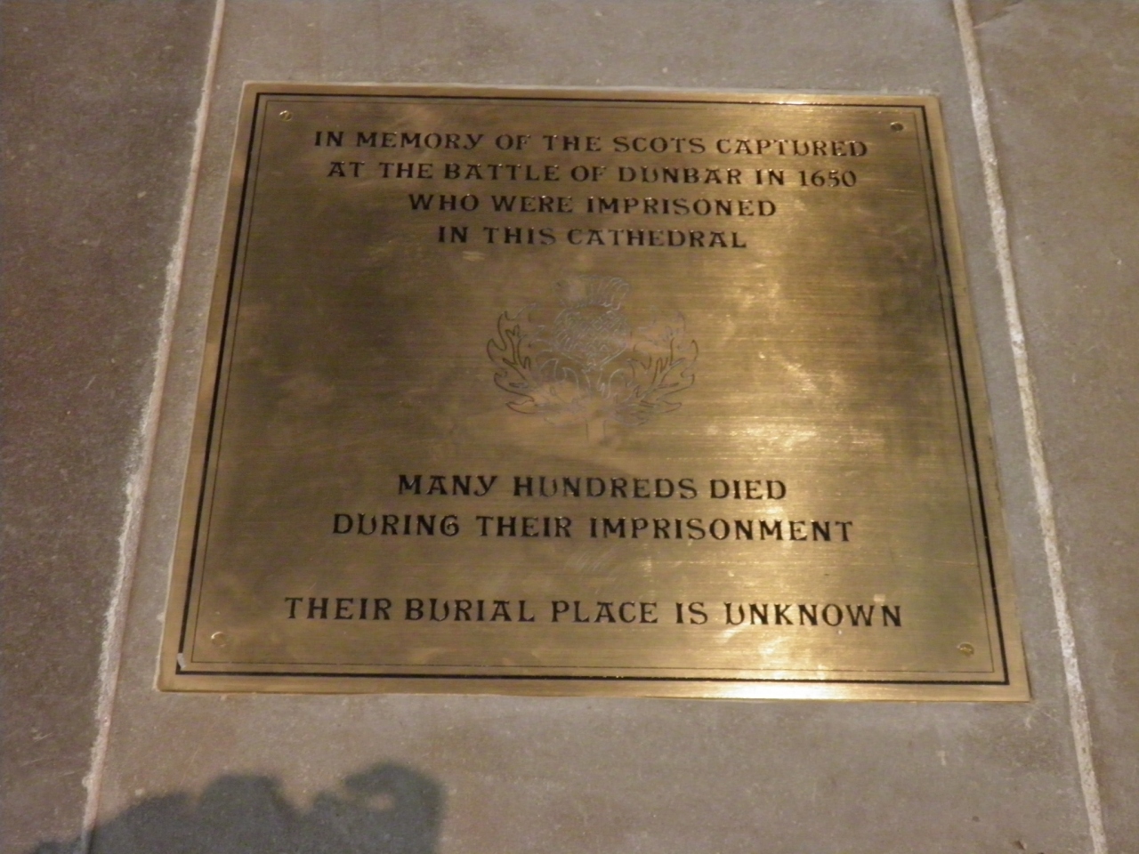 生き残った1400人は、新大陸に労働力として売り飛ばされた。大量に発生した遺体をどう処理したのかは長い間謎だったが、1946年工事中に土中から大量の人骨が出土した。大聖堂の床には、ダラム捕囚を記念したプレートが設置されている。