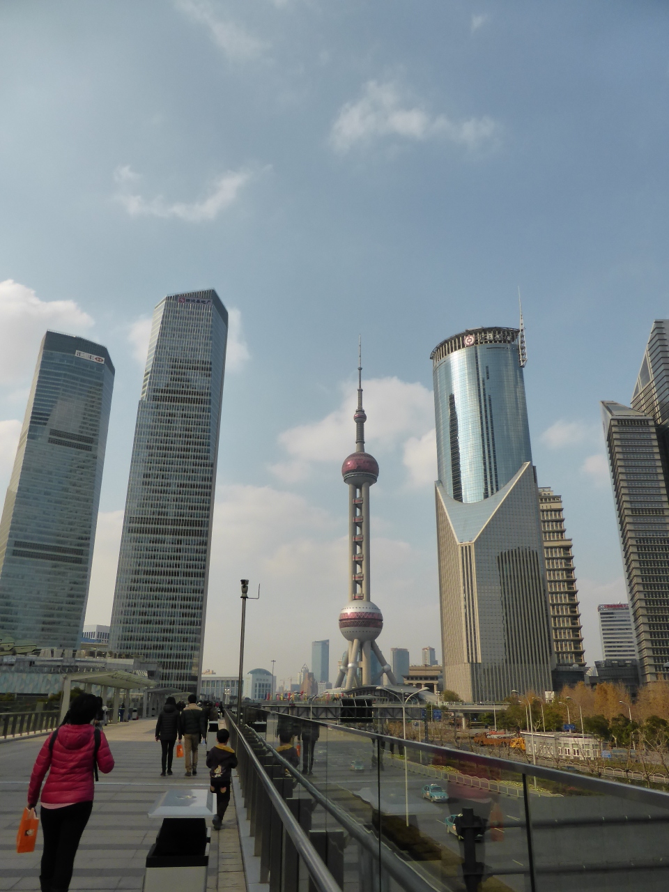 浦東地区にある東方テレビタワーですが、必ずガイドブックにも載っているし景色を眺める展望だいがありますが、曇っている日は登る意味がないかも。夜は外灘エリアを眺めることができますが、ここからじゃなくても綺麗に見れます。入場料もまあまあするのでね・・・。