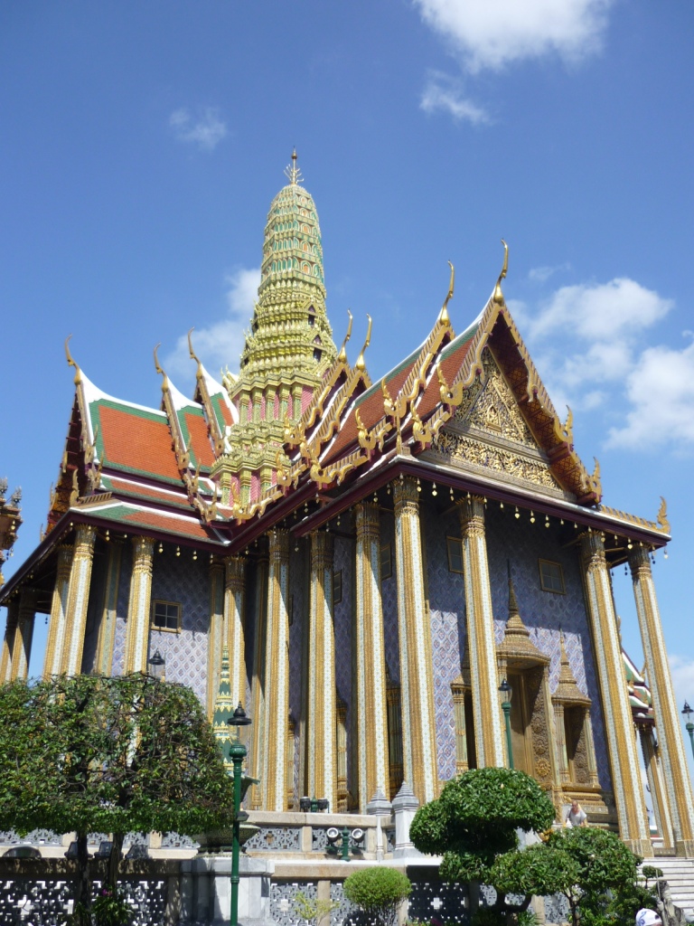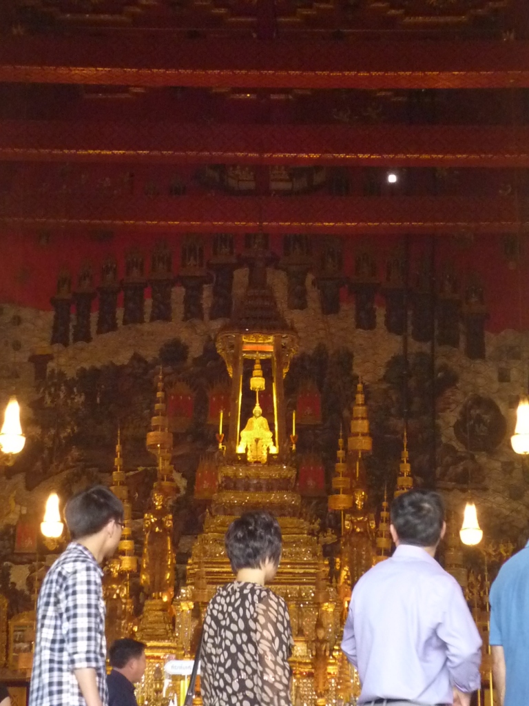インドのマガダ国から伝わったと言われるエメラルド仏がご安置されている18世紀建築の寺院です。タイの人達にとっては自分らの宗教的・民族的ルーツとエメラルド仏は重ね合うものなのでしょうか、多くの人が参拝に訪れていました。ご当地の文化を尊重し、靴を脱いで参拝しましょう。