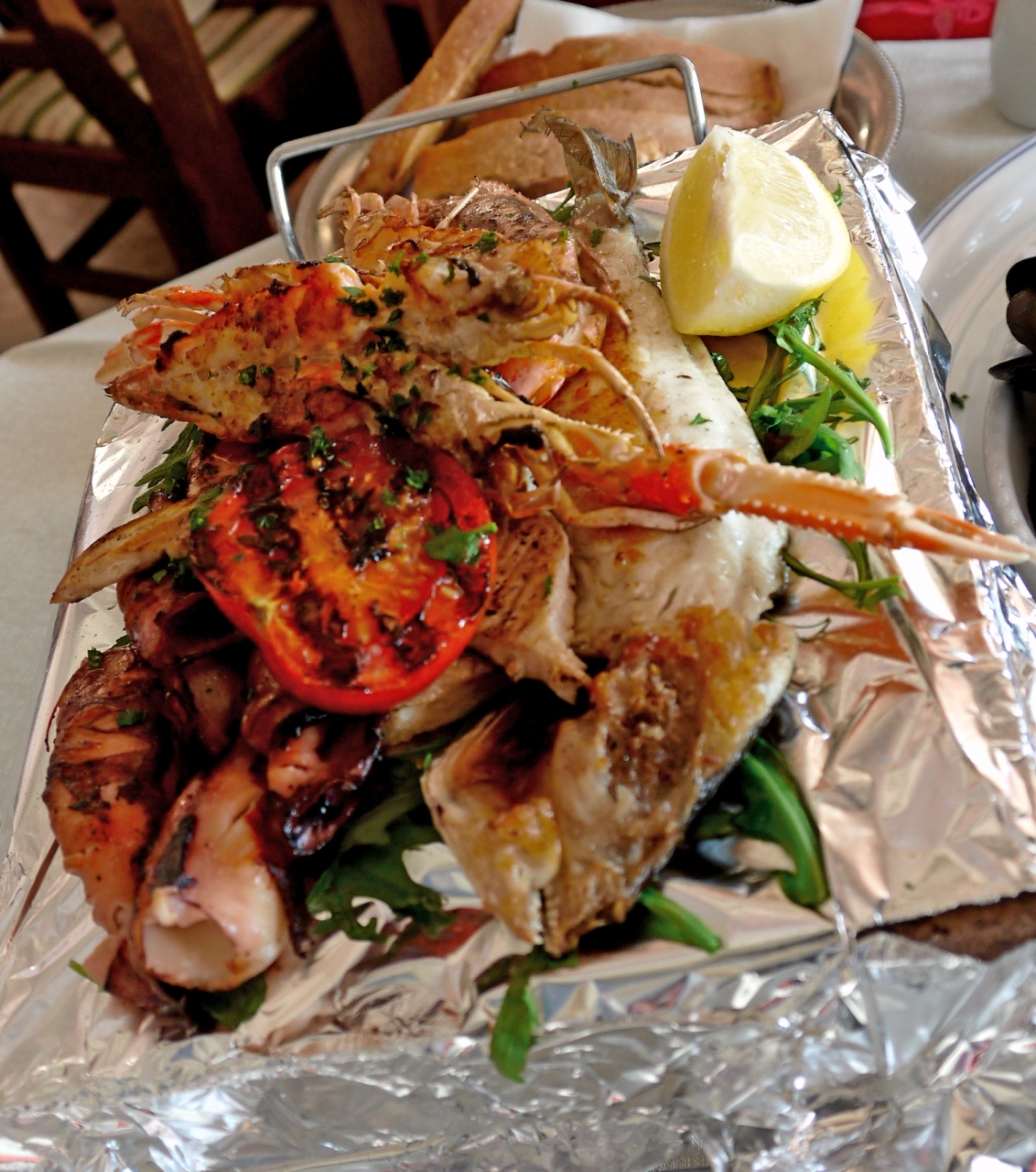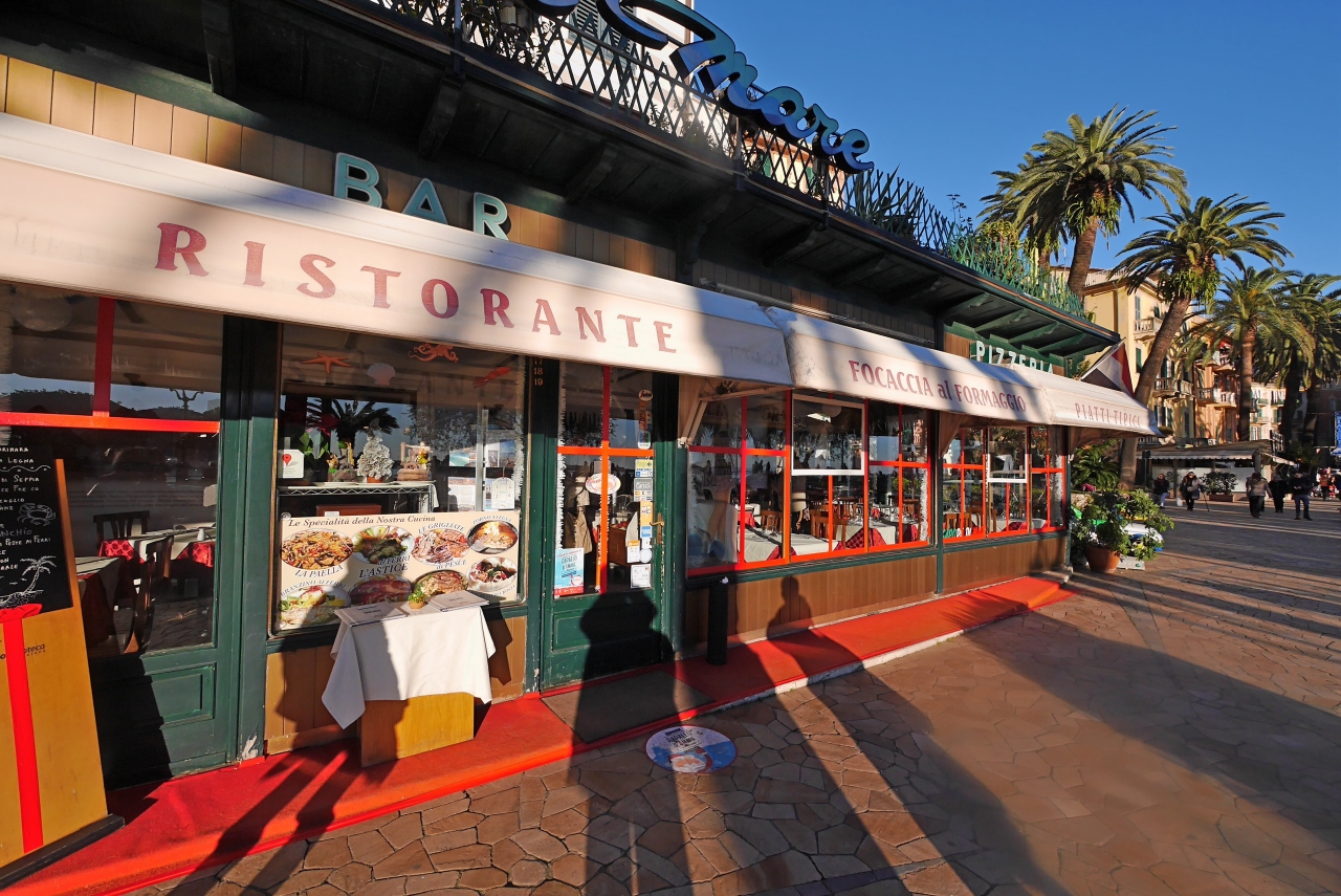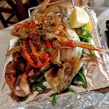 Rapalloのレストラン,海岸べりにある.素材を生かした魚介グリルがおいしい