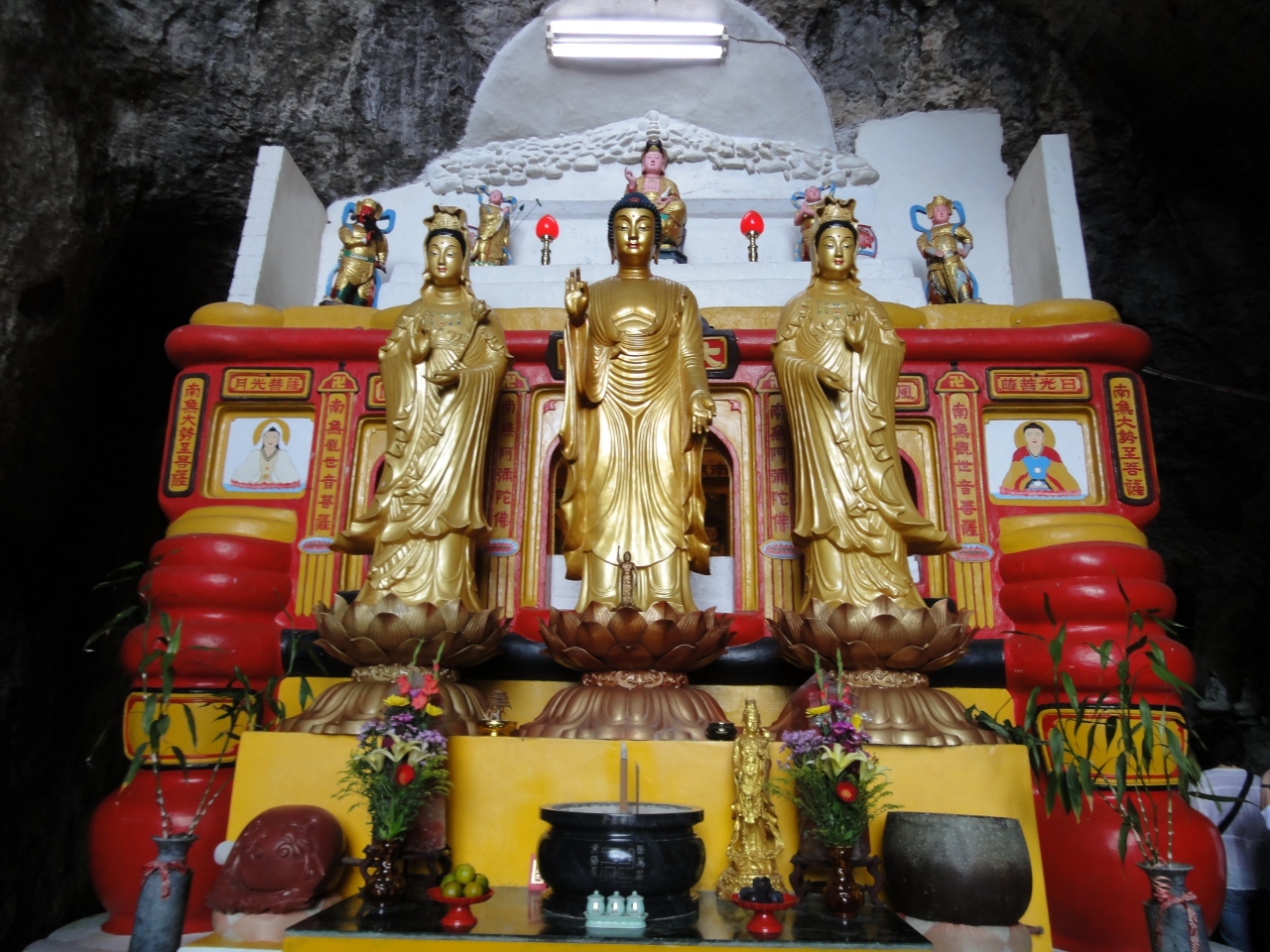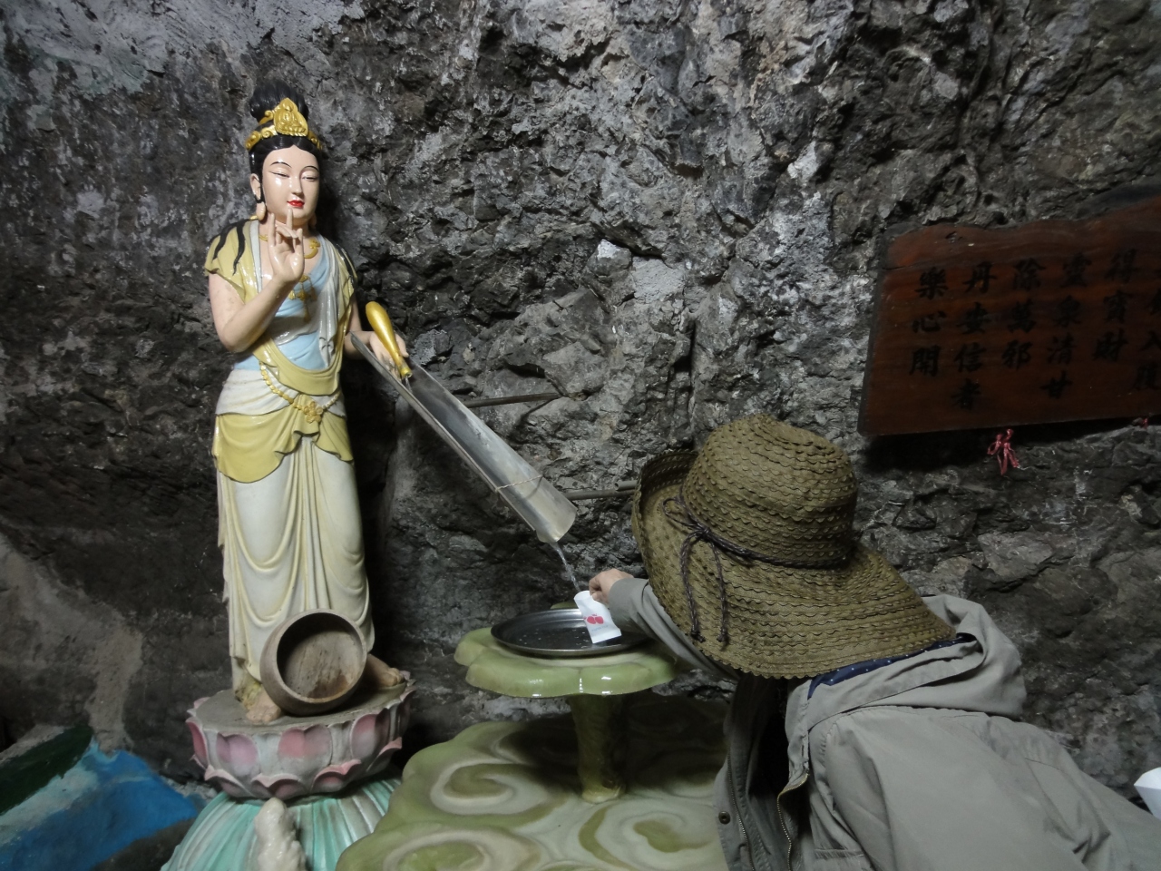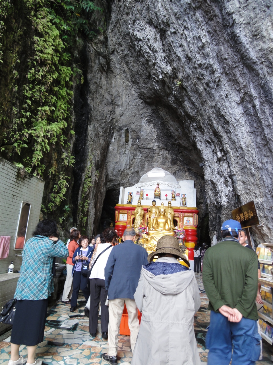 ここ八仙洞・霊巌寺は、海岸すぐ近くの岩壁の中腹にあります。