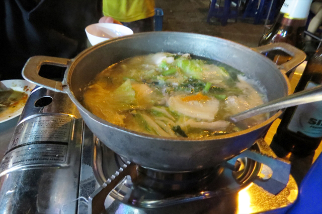 蒸し暑いタイで、熱々の鍋を道ばたで食べる感じ。