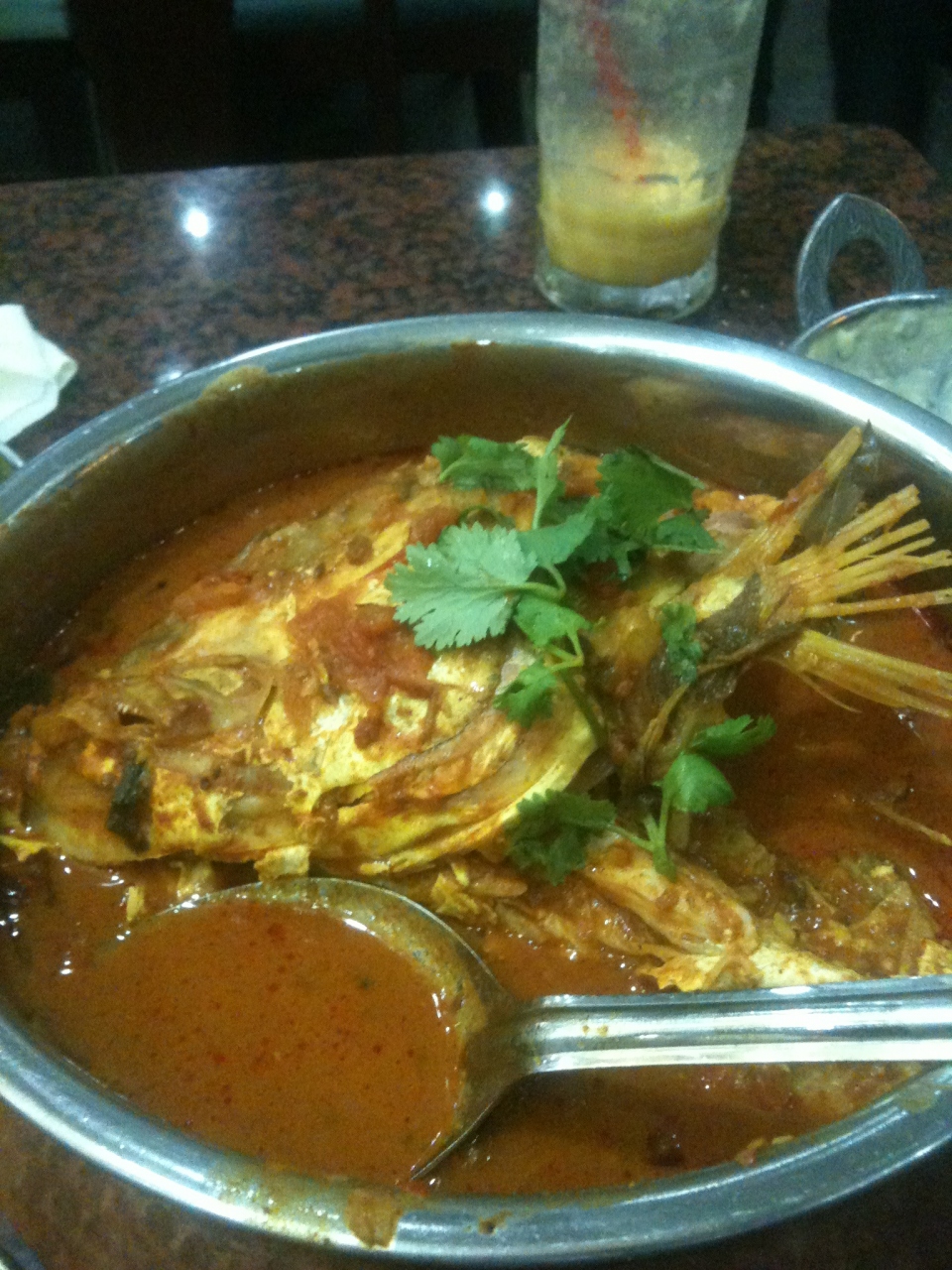 シンガポール名物料理というので、フィッシュヘッドカレーを注文しました。
