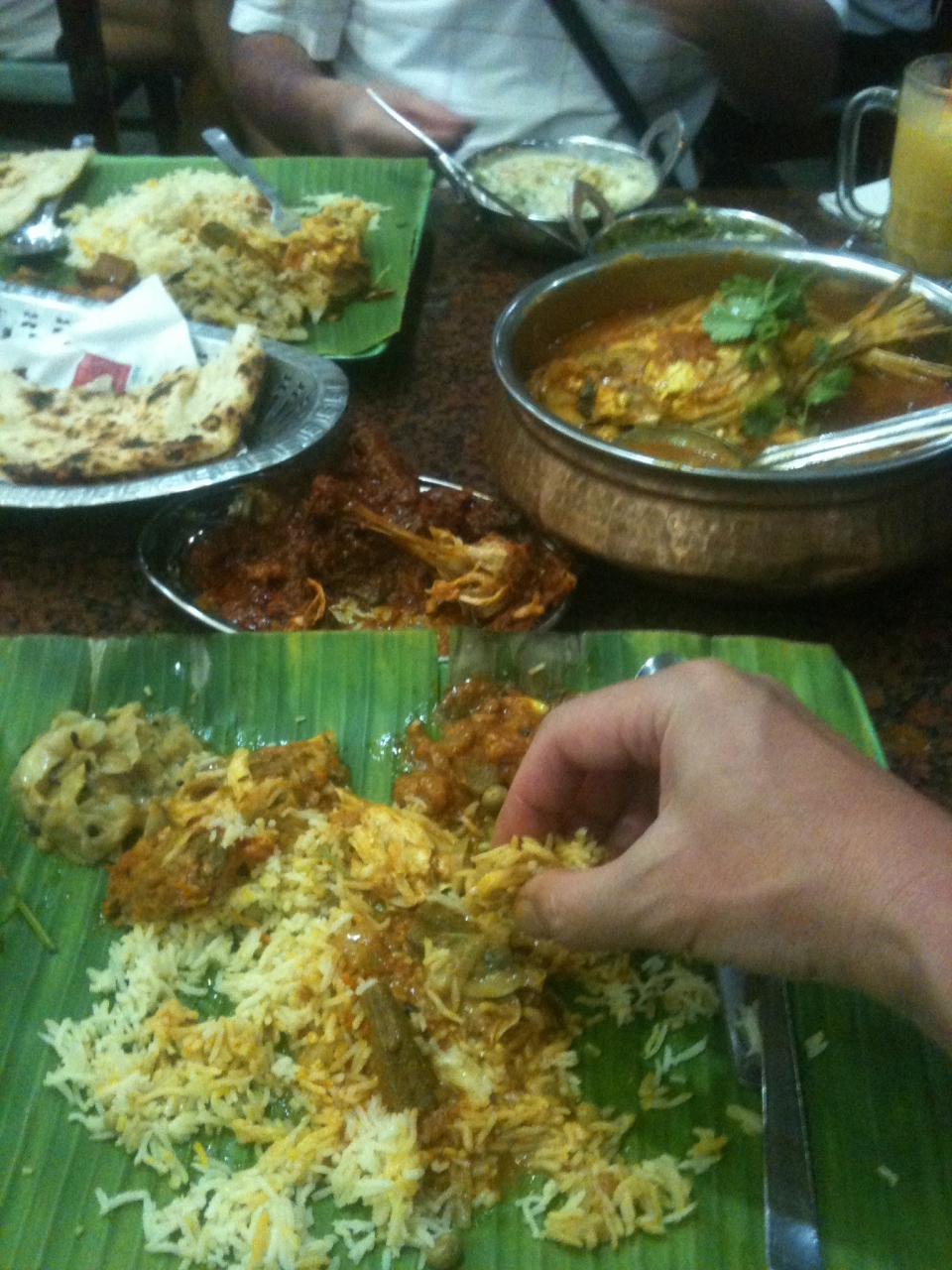 指を使って不器用に食べていると、近くのマレー系の女性客がこっちを見て笑ってました。