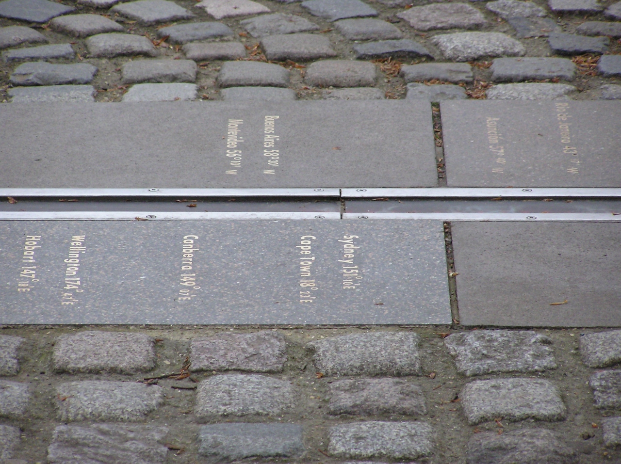 1675年にチャールズ二世が設立した王立天文台。1851年にジョージ・ビドル・エアリーが子午環を設置した地点が「グリニッジ子午線」として、経度0度と定義された。今日使用されている「IERS基準子午線」は、グリニッジ子午線から西に102.5メートルずれている。