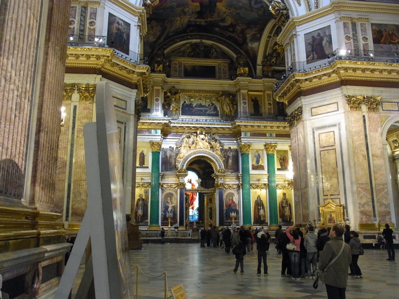 サンクトペテルブルクの目玉観光スポットの一つです。収容人数は14,000との事。内部は大理石が沢山使われていて、モザイク画もあり豪華です。ドーム部分は展望台になっていて、サンクトペテルブルクの街並みが一望できます。この建物は4代目で設計者はフランス人のオーギュスト・モンフェラン。この人がエルミタージュ美術館前宮殿広場の真ん中にあるアレクサンドルの円柱も建てました。