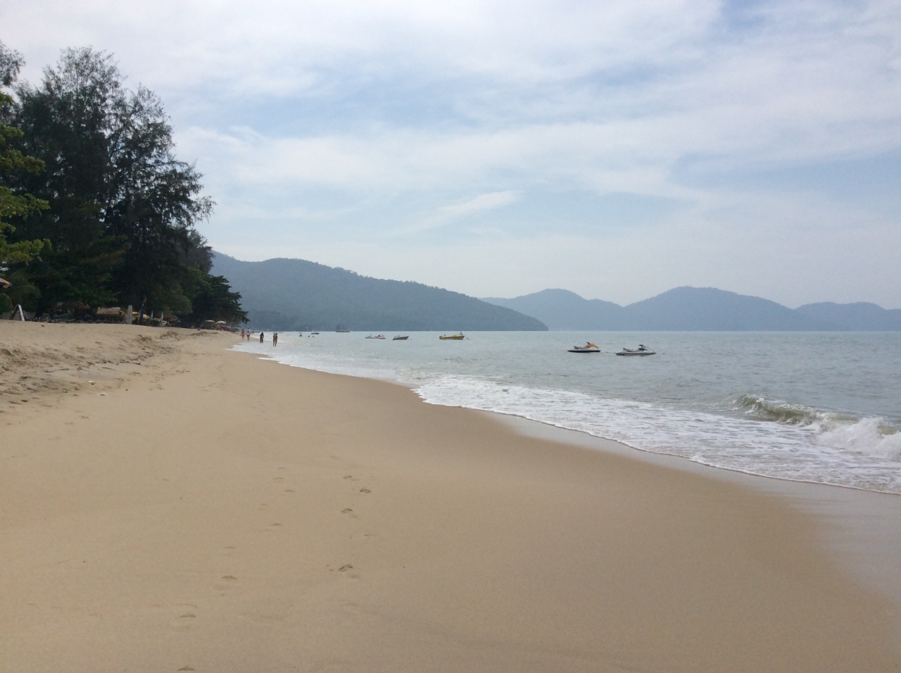 ジョージタウンからバスで30分くらい。トレーダーズホテルに泊まっていたので、ゴールデンサンズのプールを使えました。海は確かに汚い。30年くらい前から開発が進んで、そのためだそうです。クラゲも多いそうで、若干泳いでいる人は、クラゲ除けのネットの中でした。ホテルのプールの方が眺めも良いし、ノンビリできました。